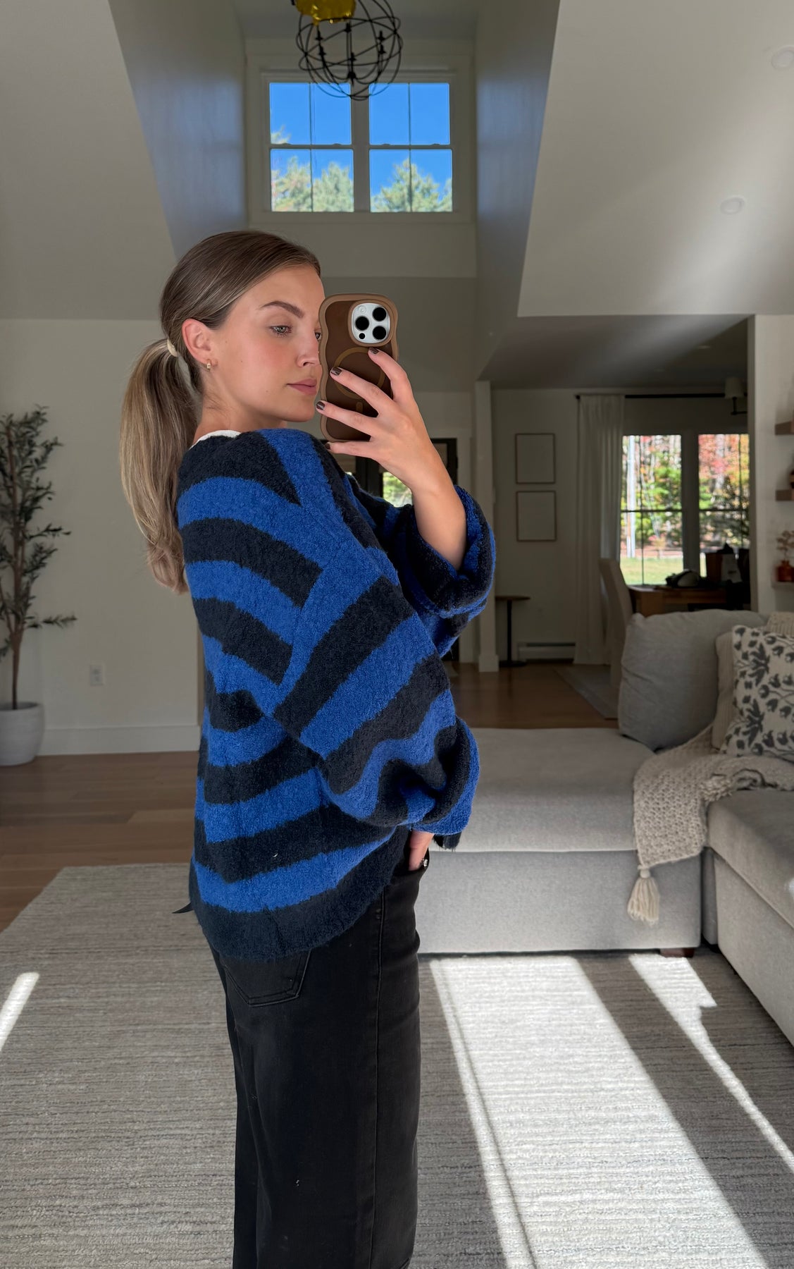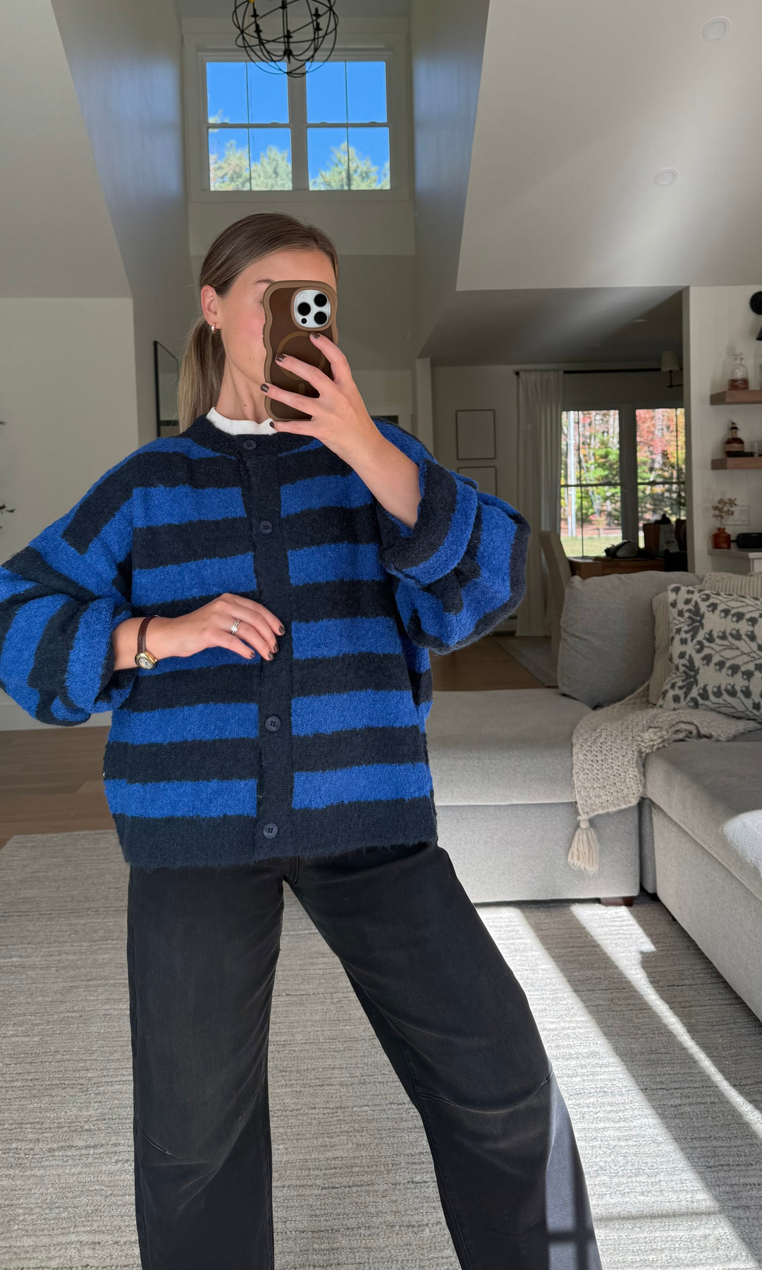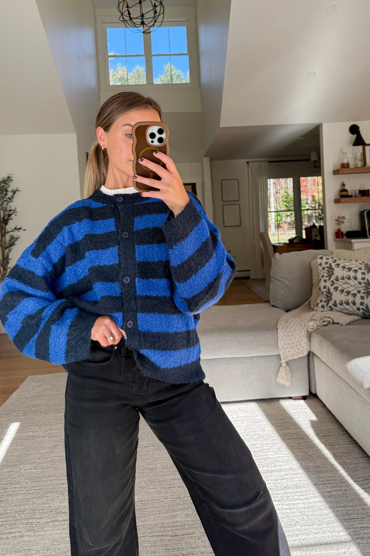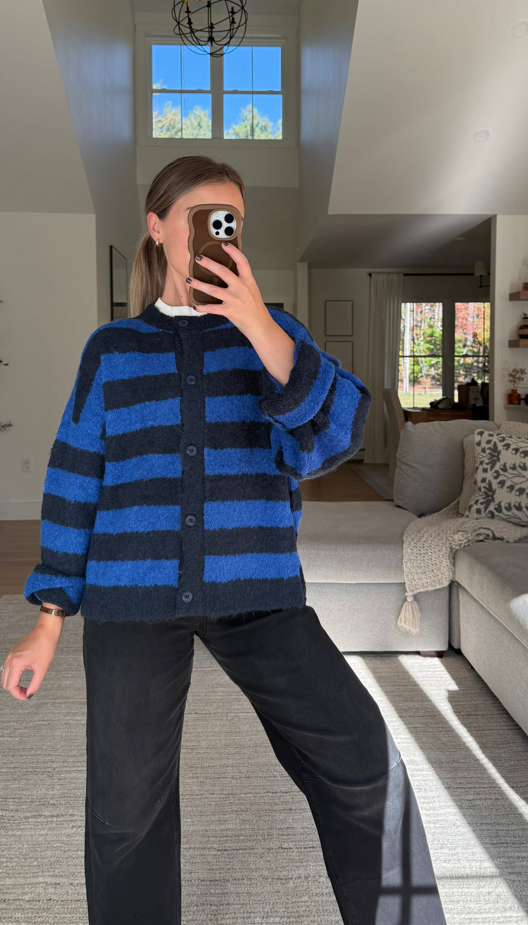 Blue Stripe Boucle Cardigan