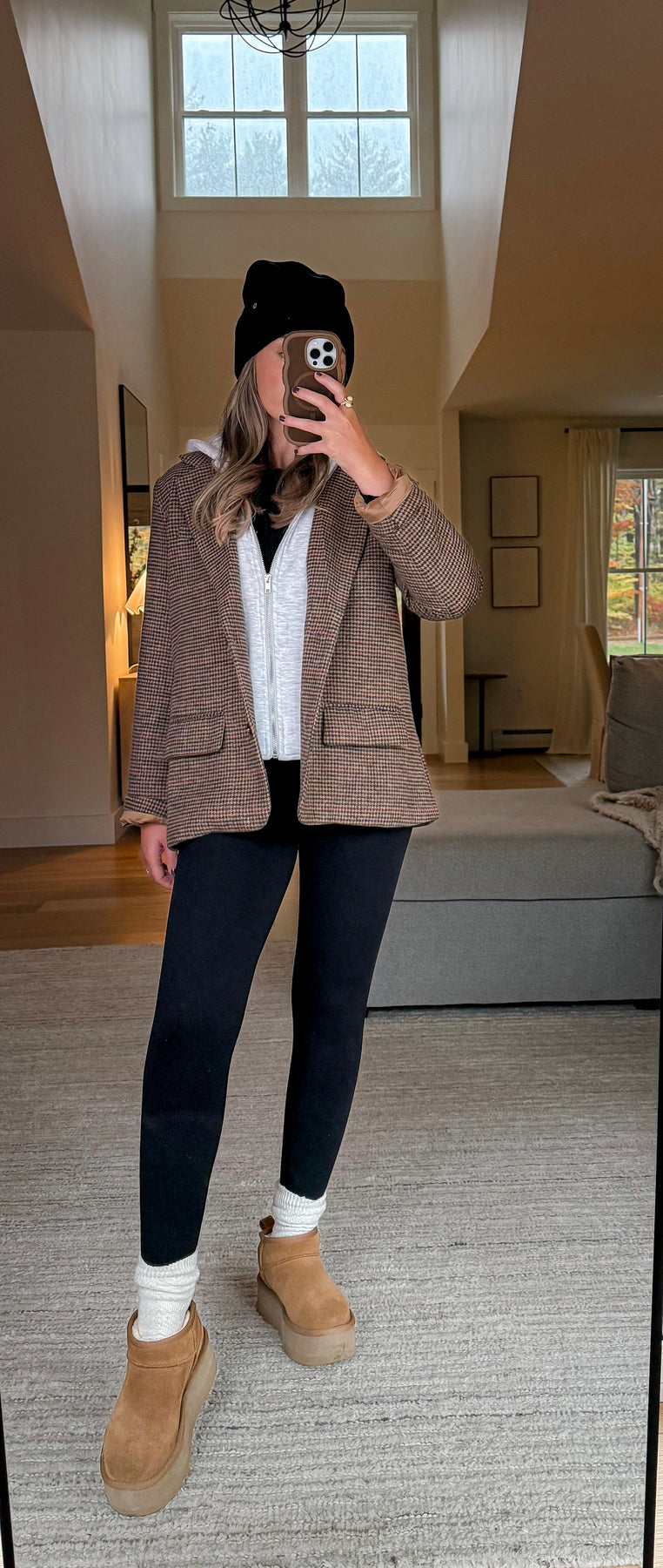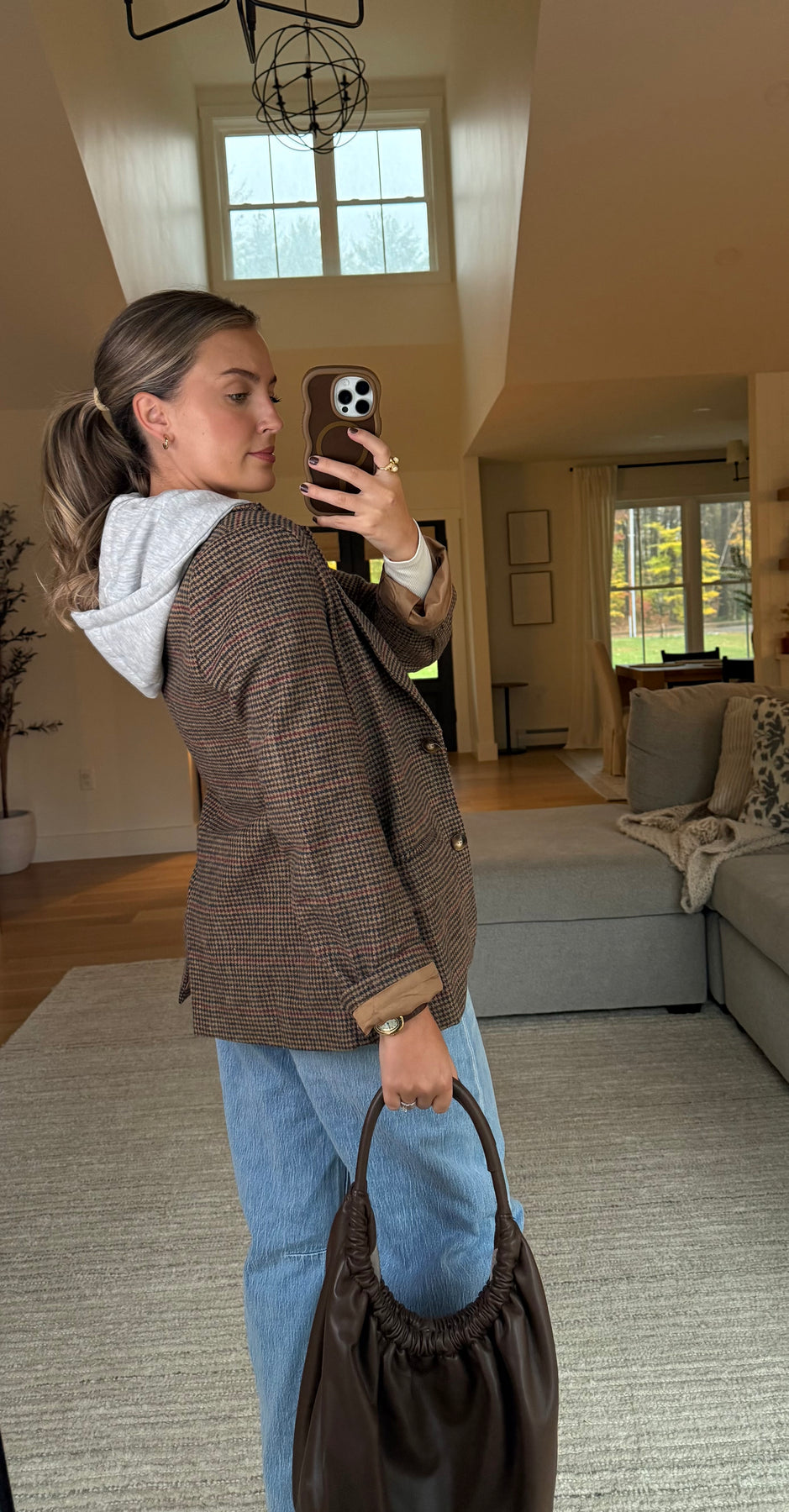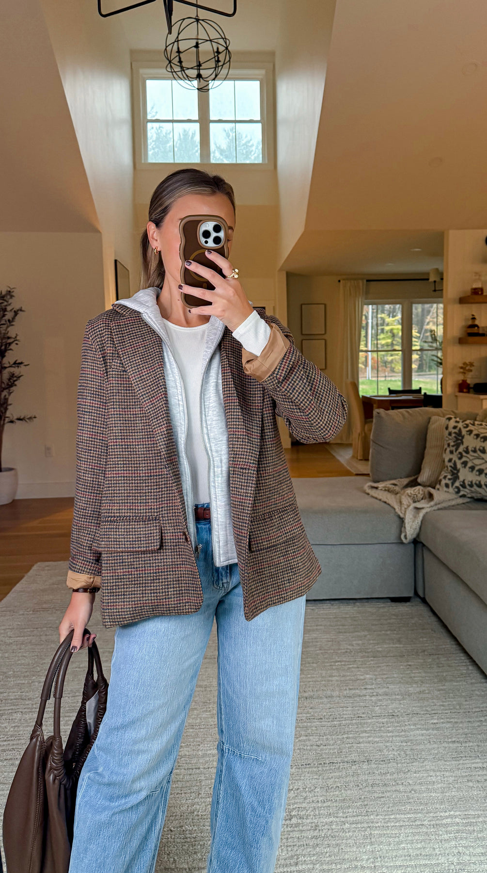 Blazer style coat with faux sweatshirt lining with zipper front and full lining