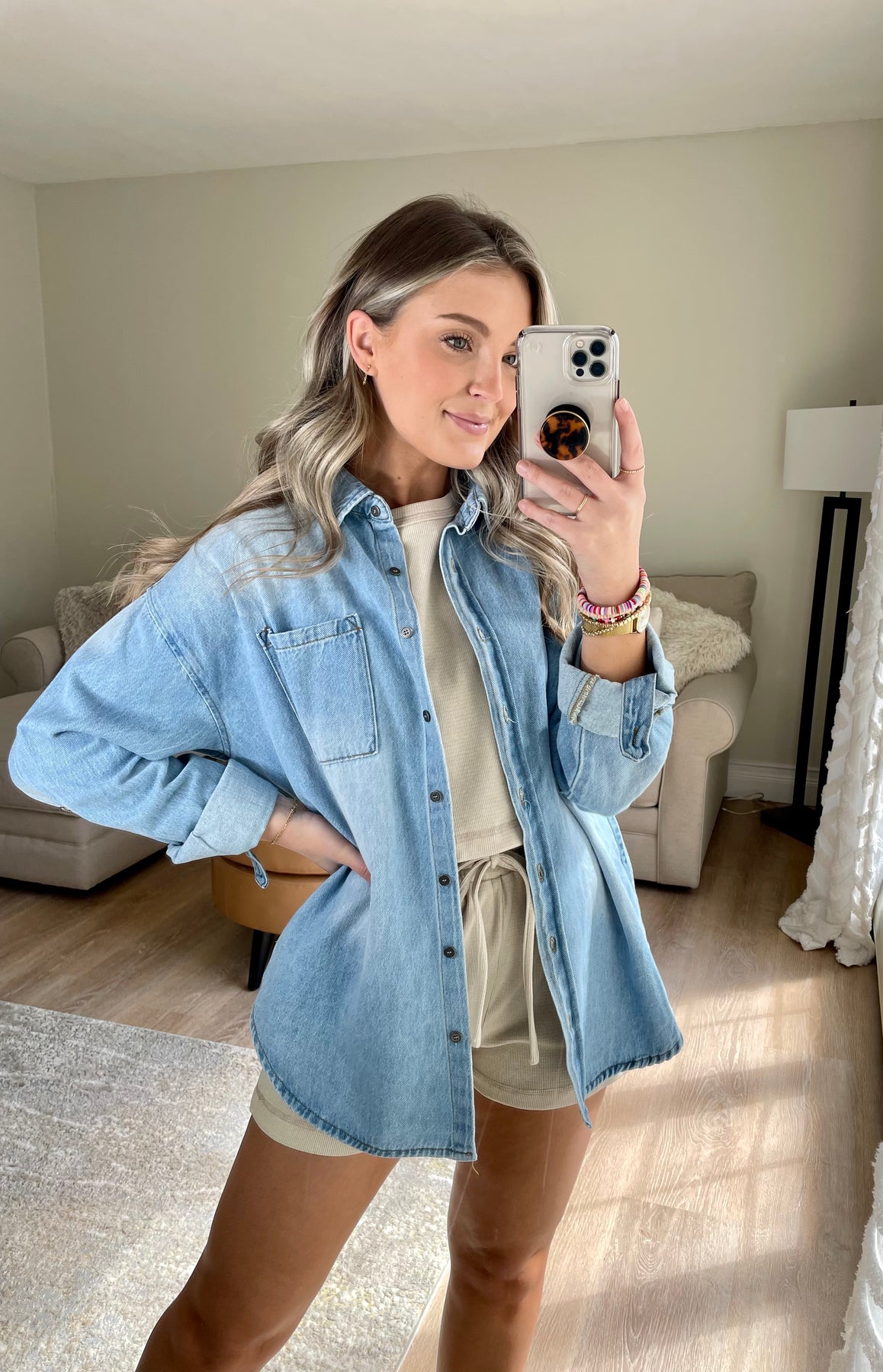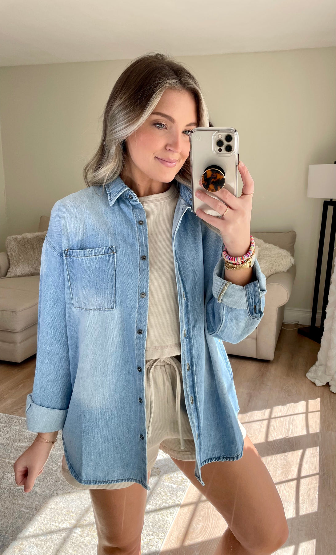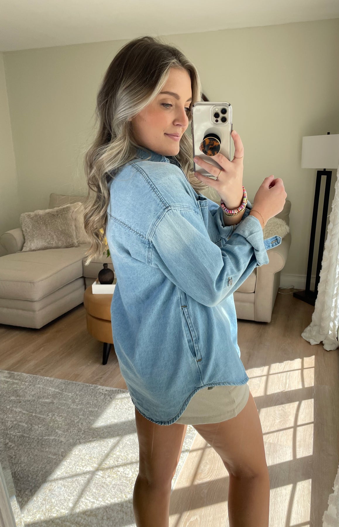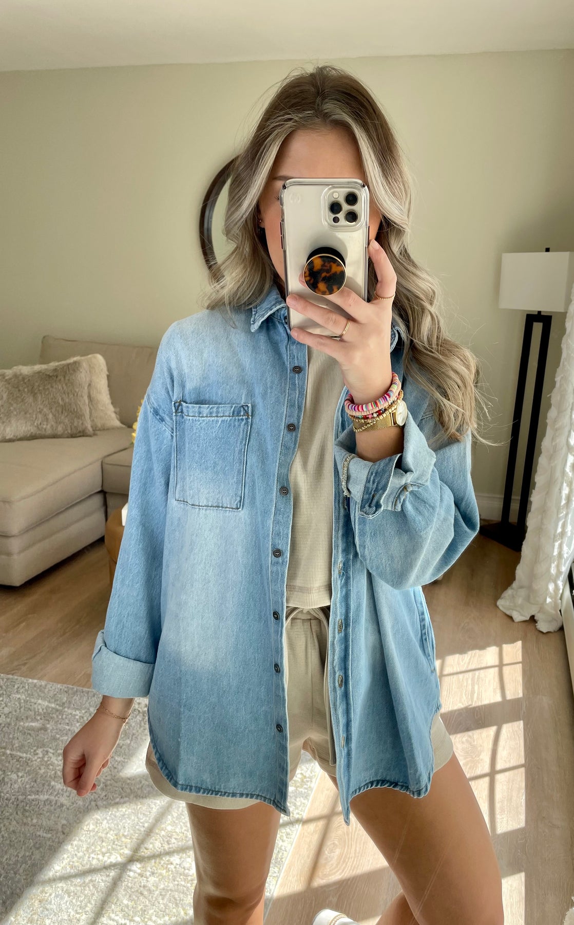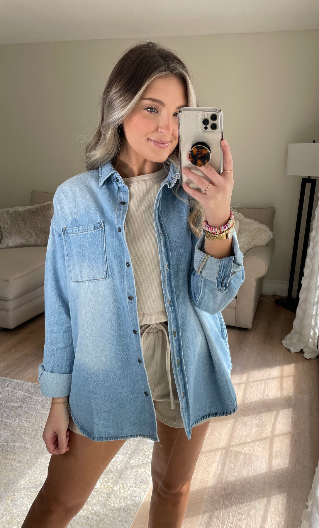 Oversized lightweight denim shirt jacket with pockets - extremely soft!
