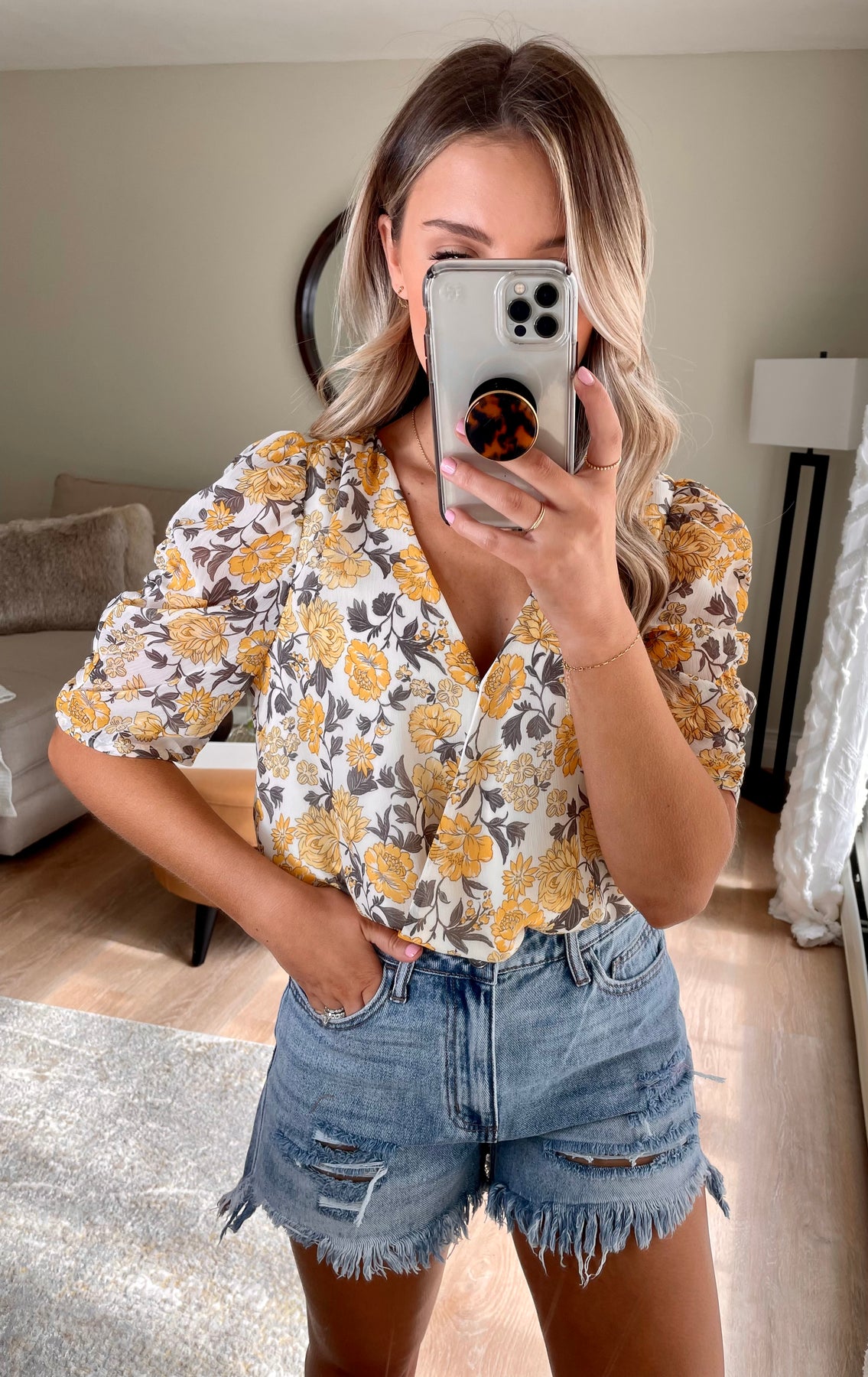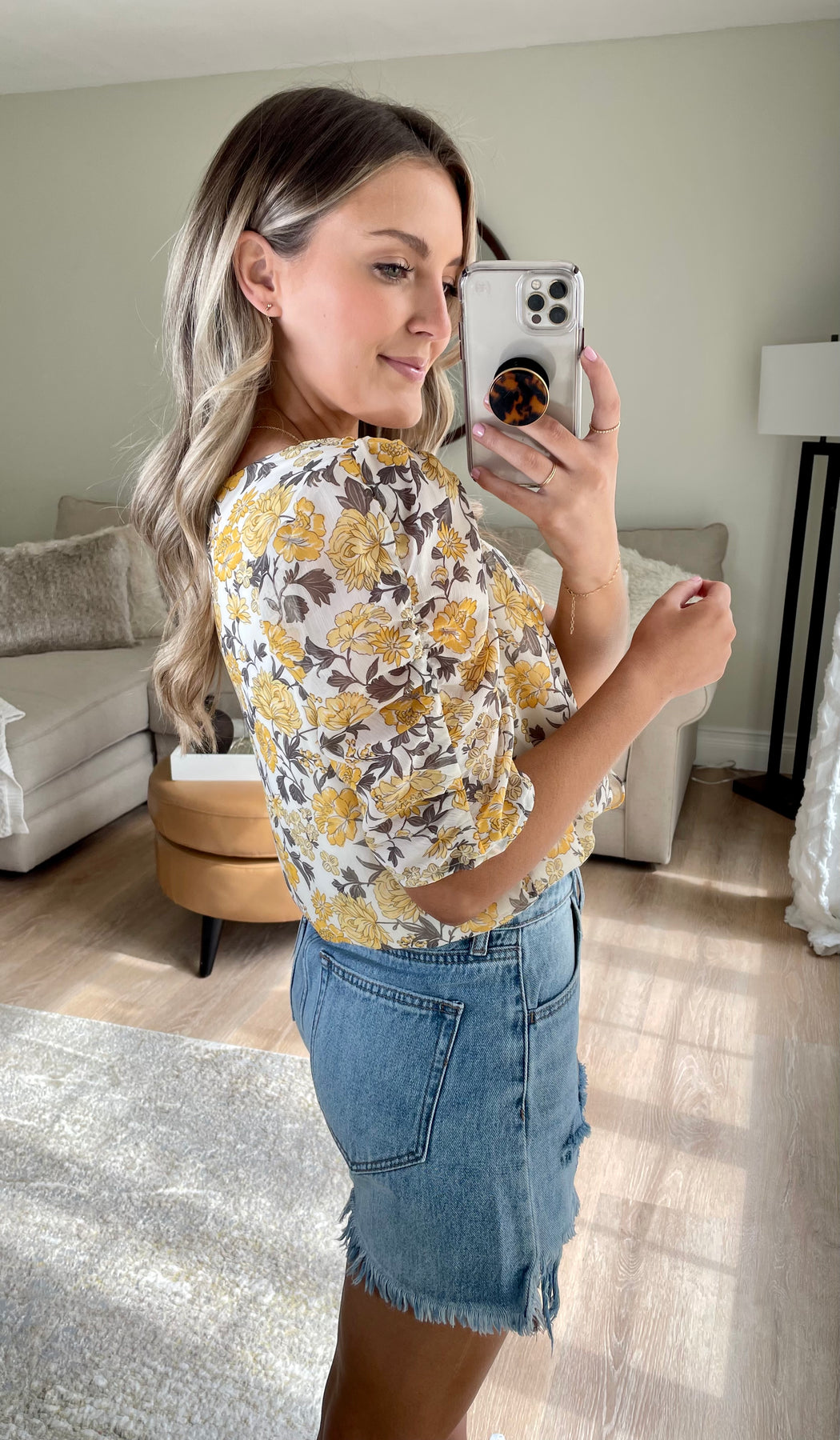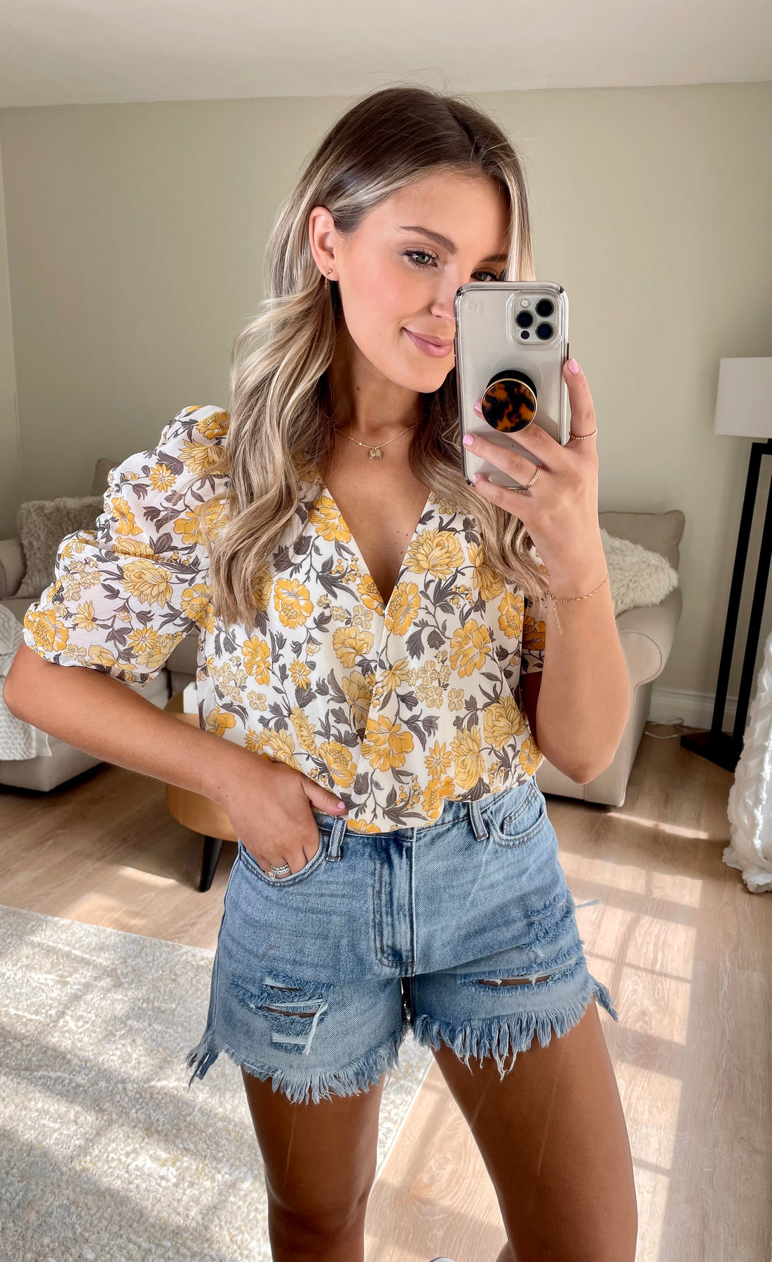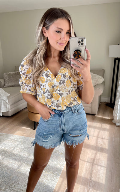 Cinched Sleeve V-neck Floral Bodysuit