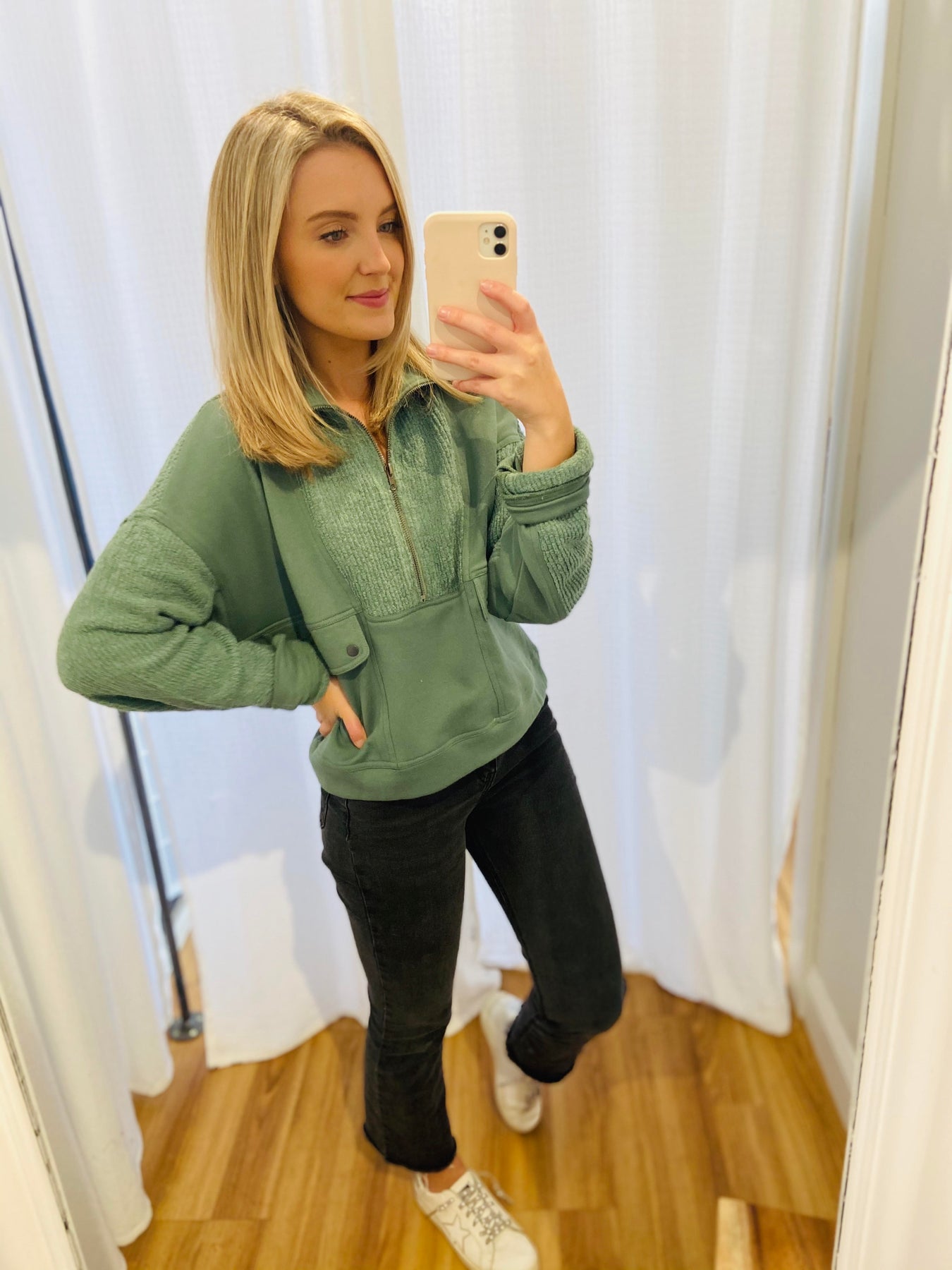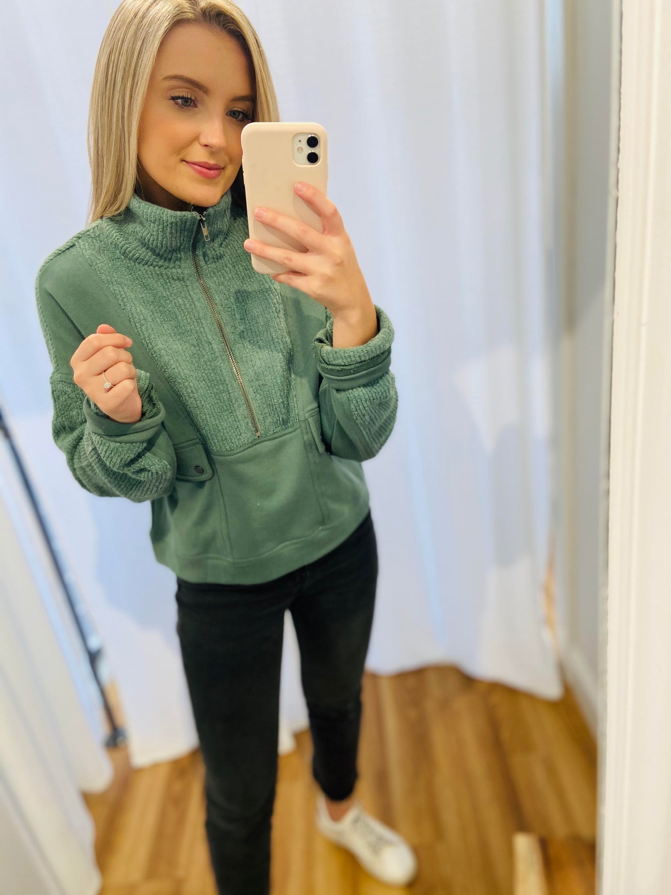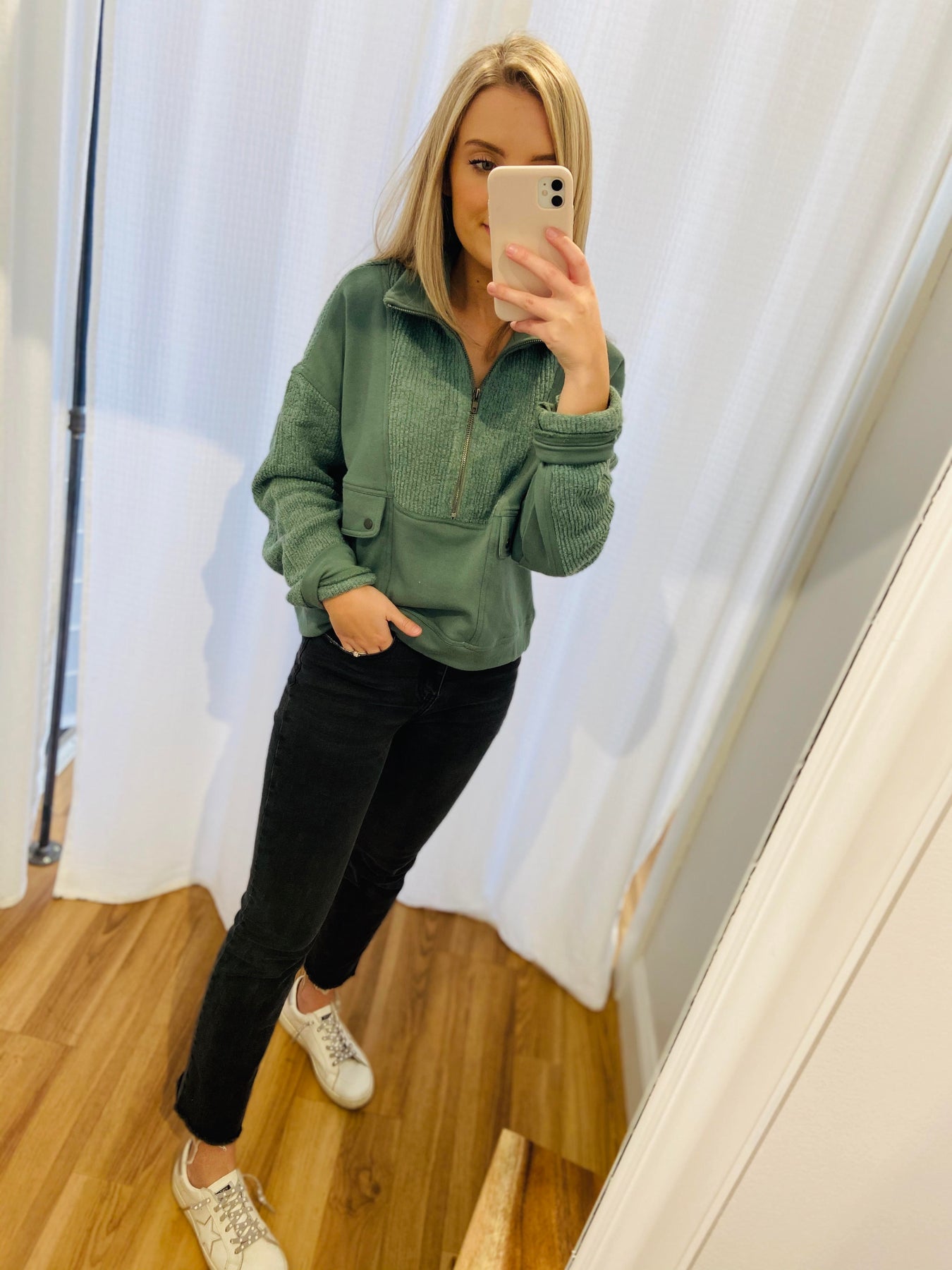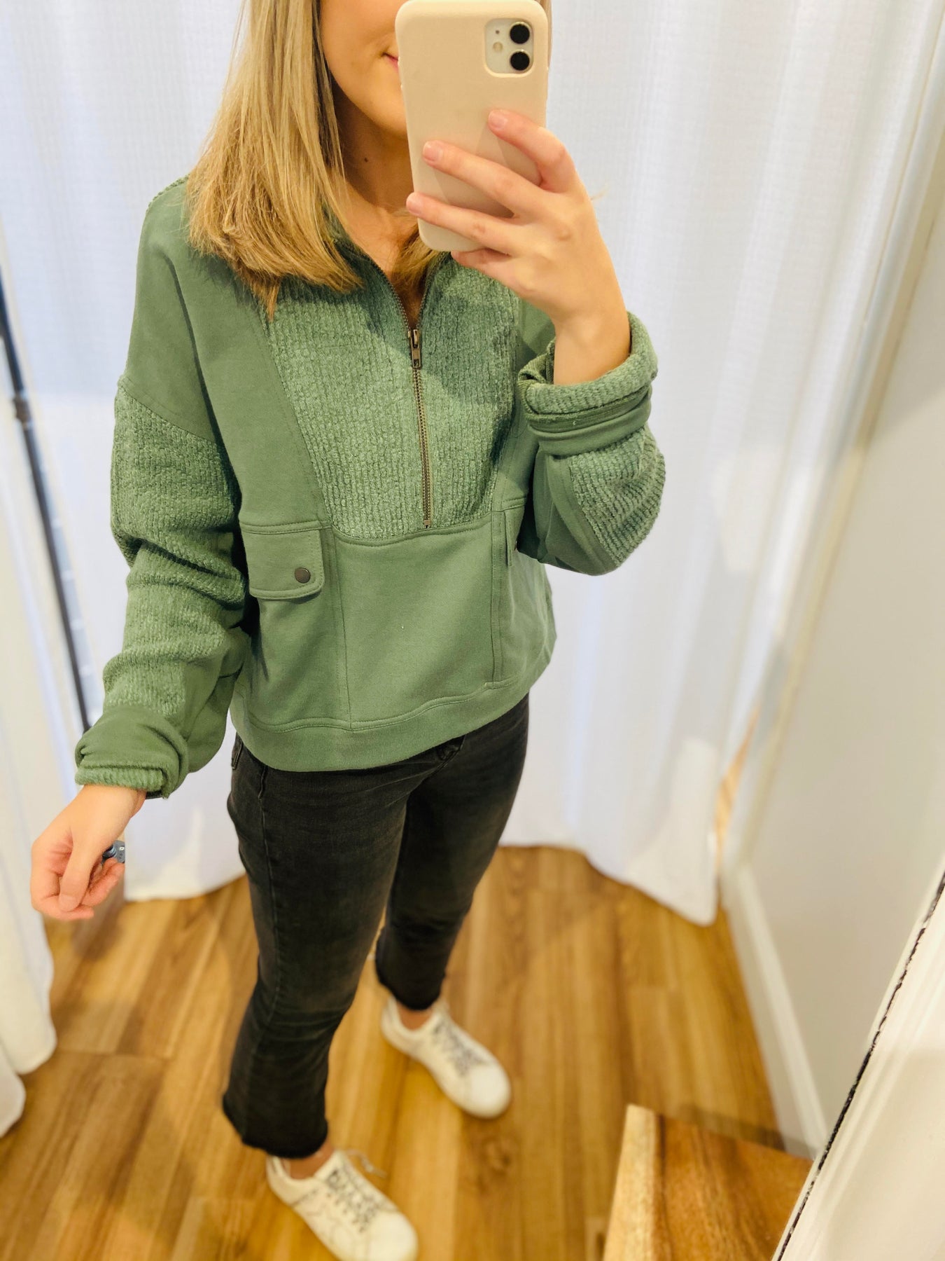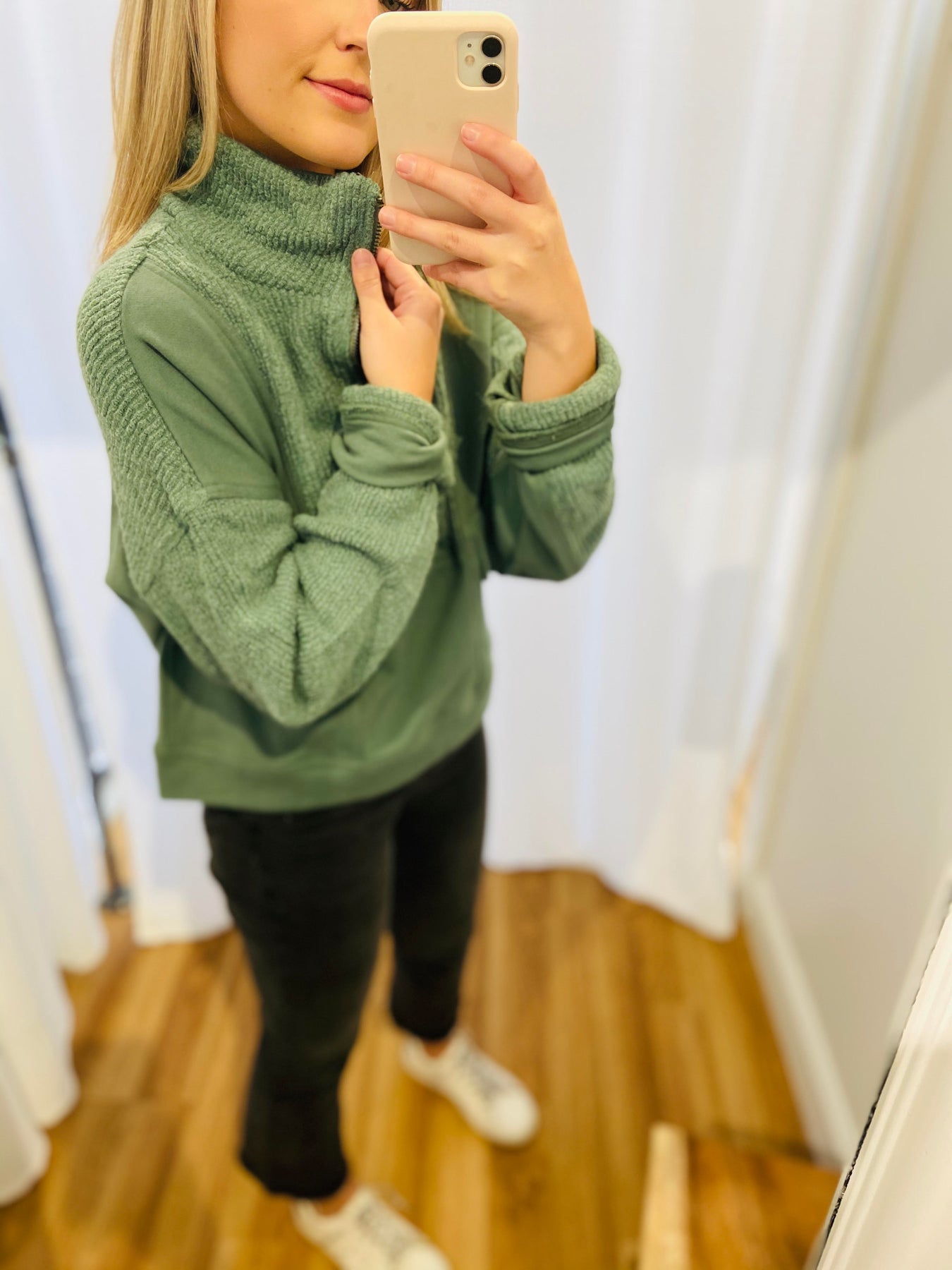 Dusty Green 3/4 Mock Neck Zip