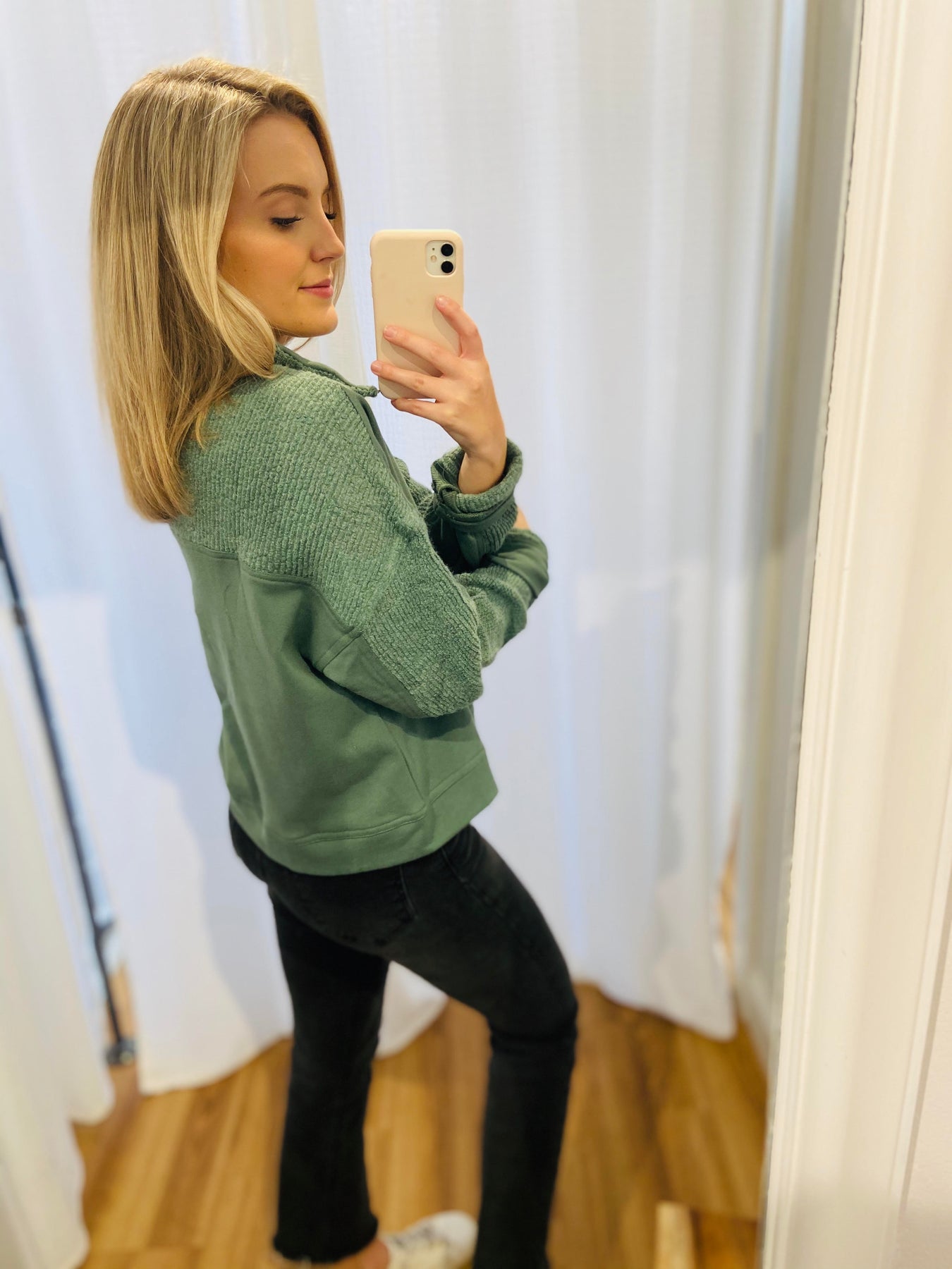 We love this with black or regular denim, joggers or leggings!