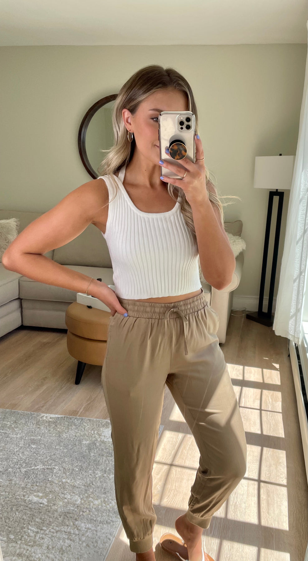 Cropped ribbed knit with halter strap neckline