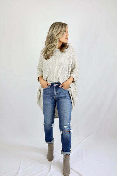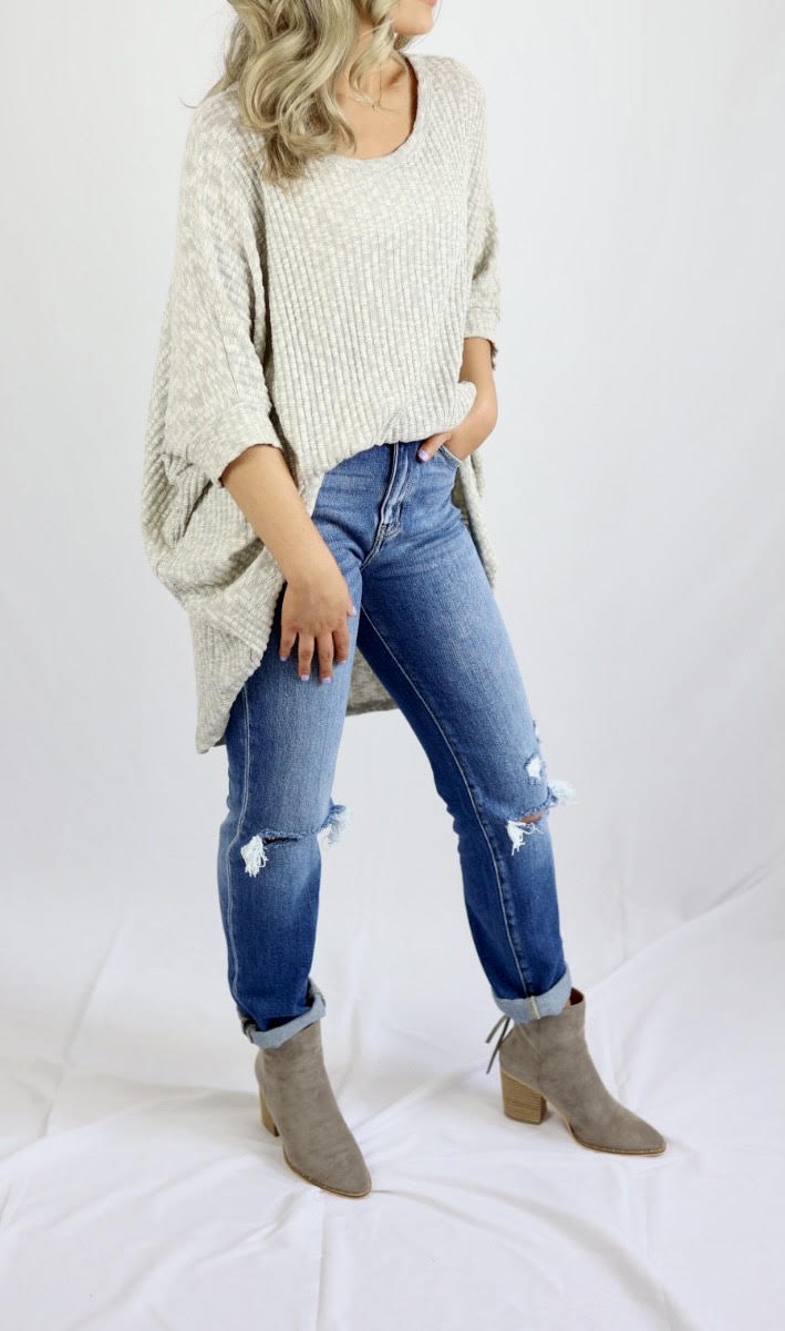 Hi-Low 3/4 Sleeve Knit // Heather Grey