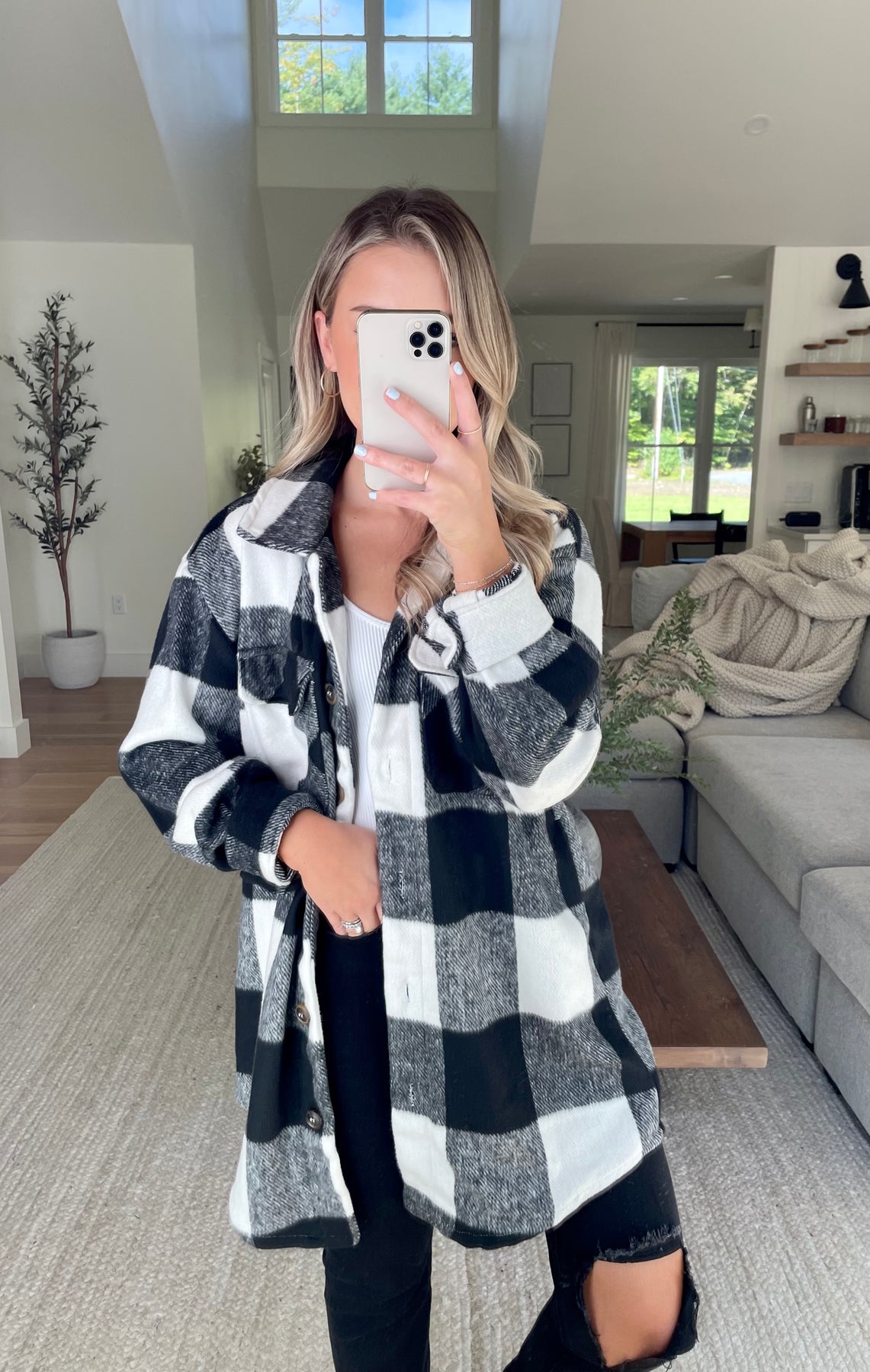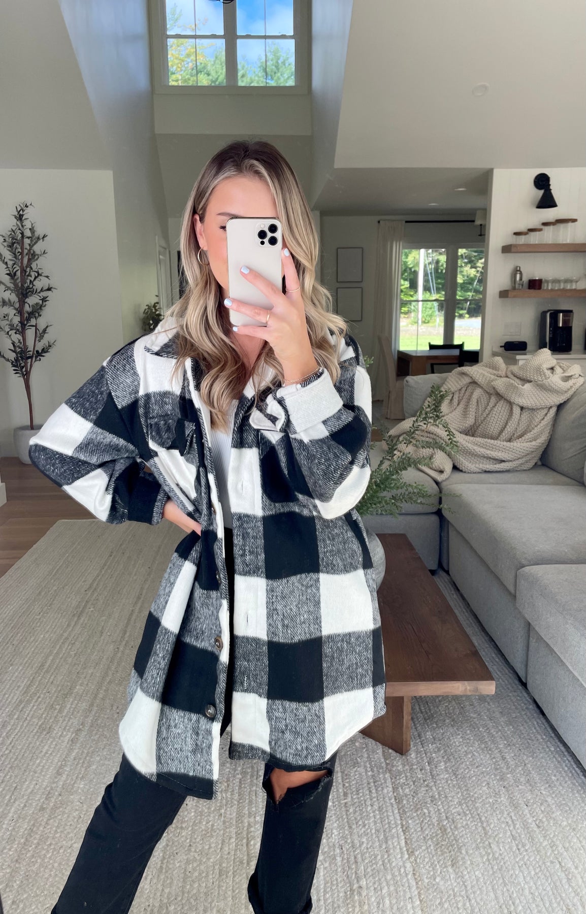 Longline Plaid Shacket // Black