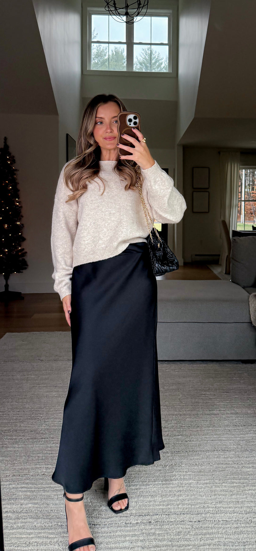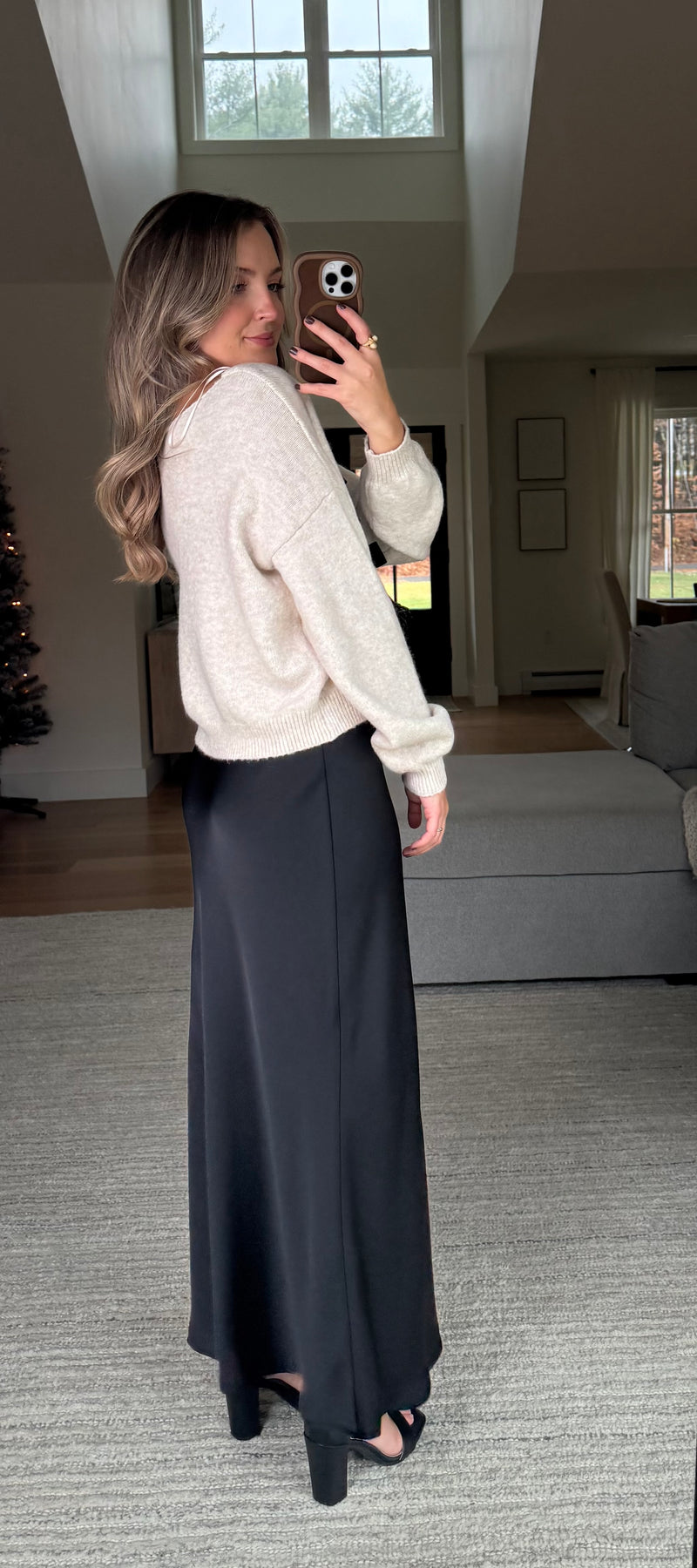 • Elastic waist satin maxi skirt