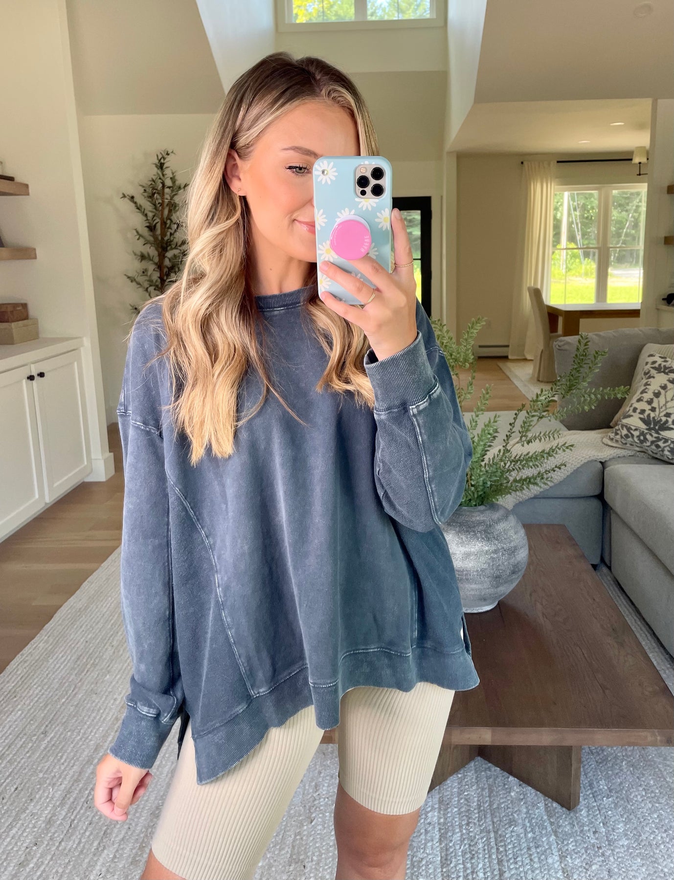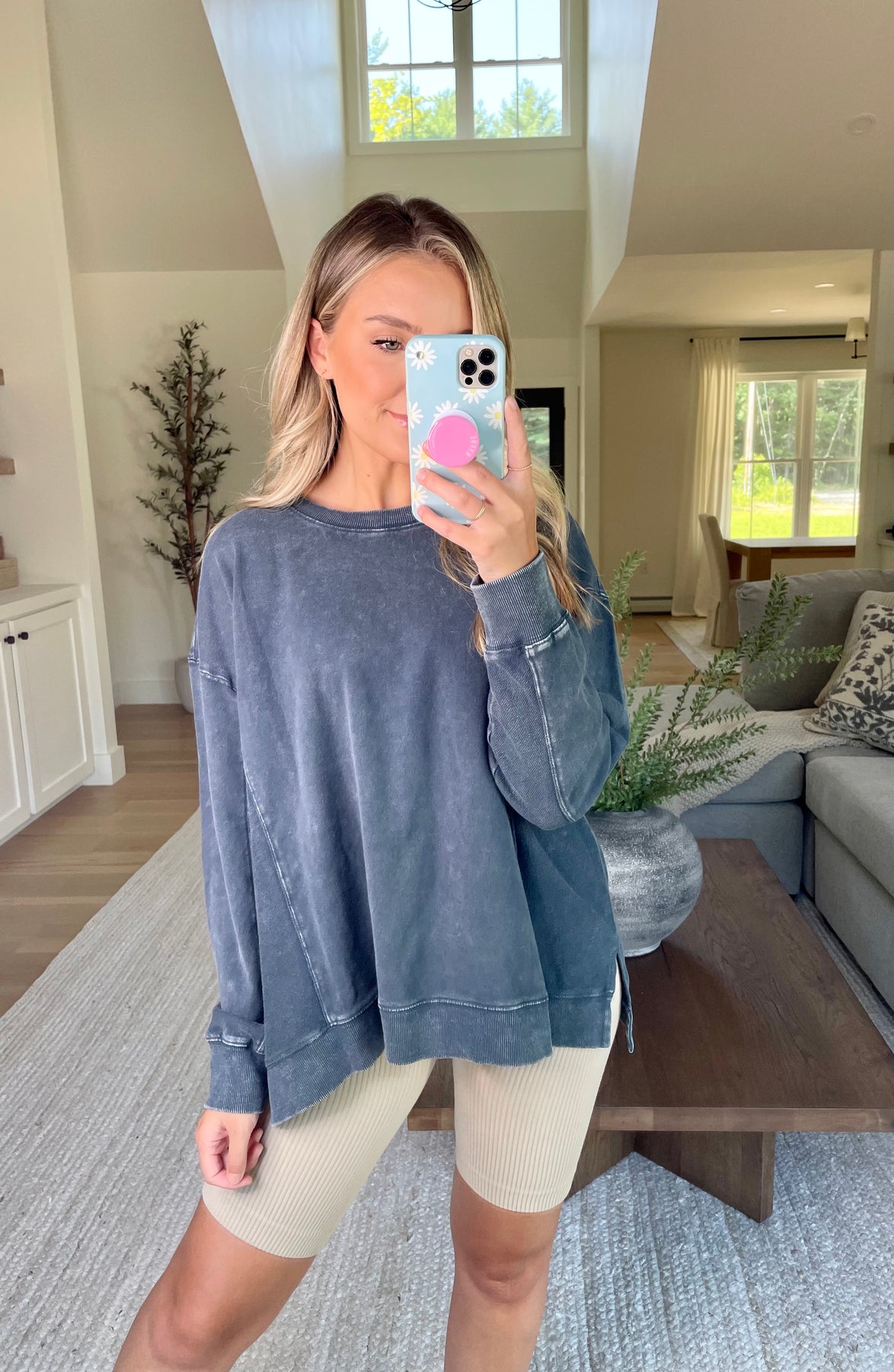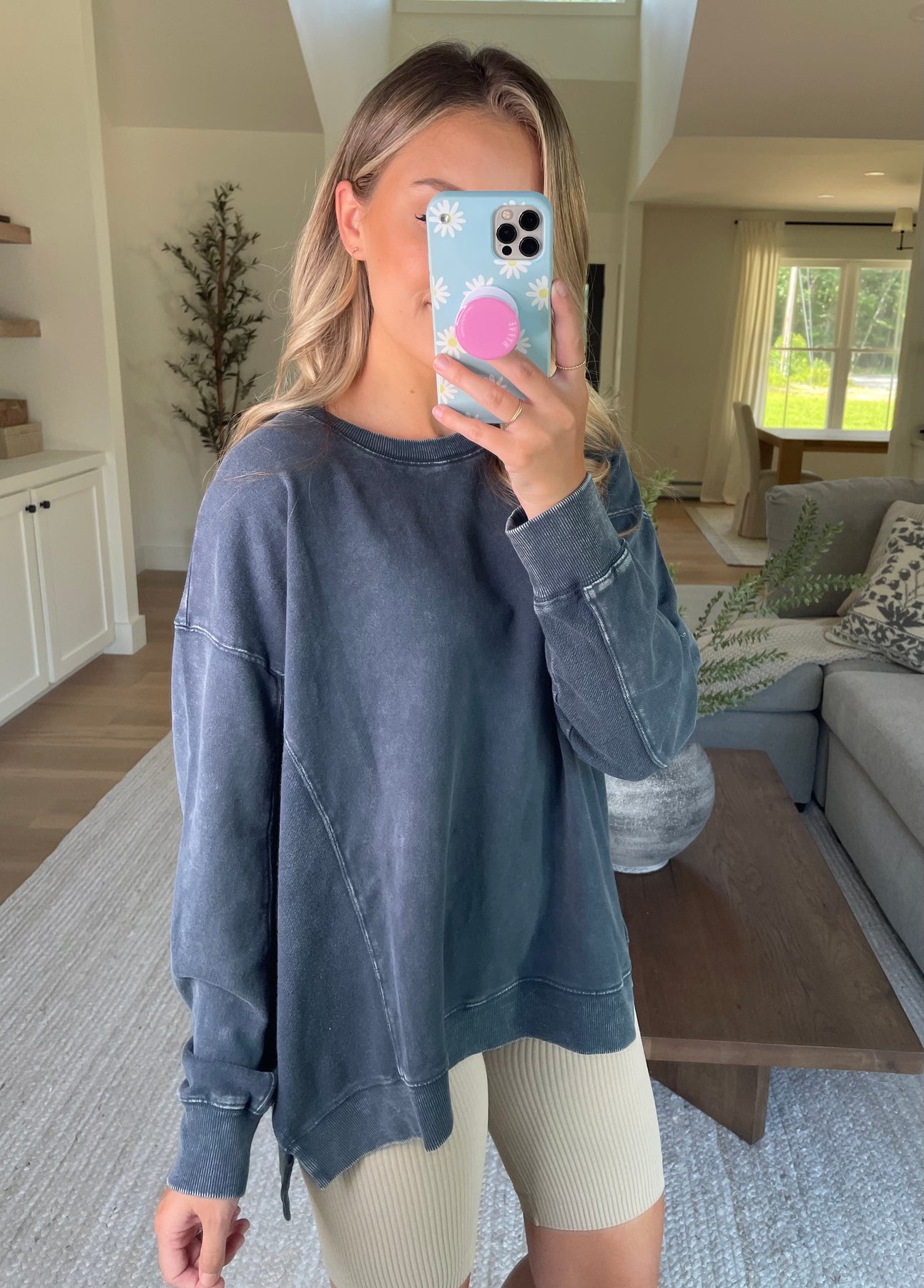 Mineral washed exposed seam sweatshirt