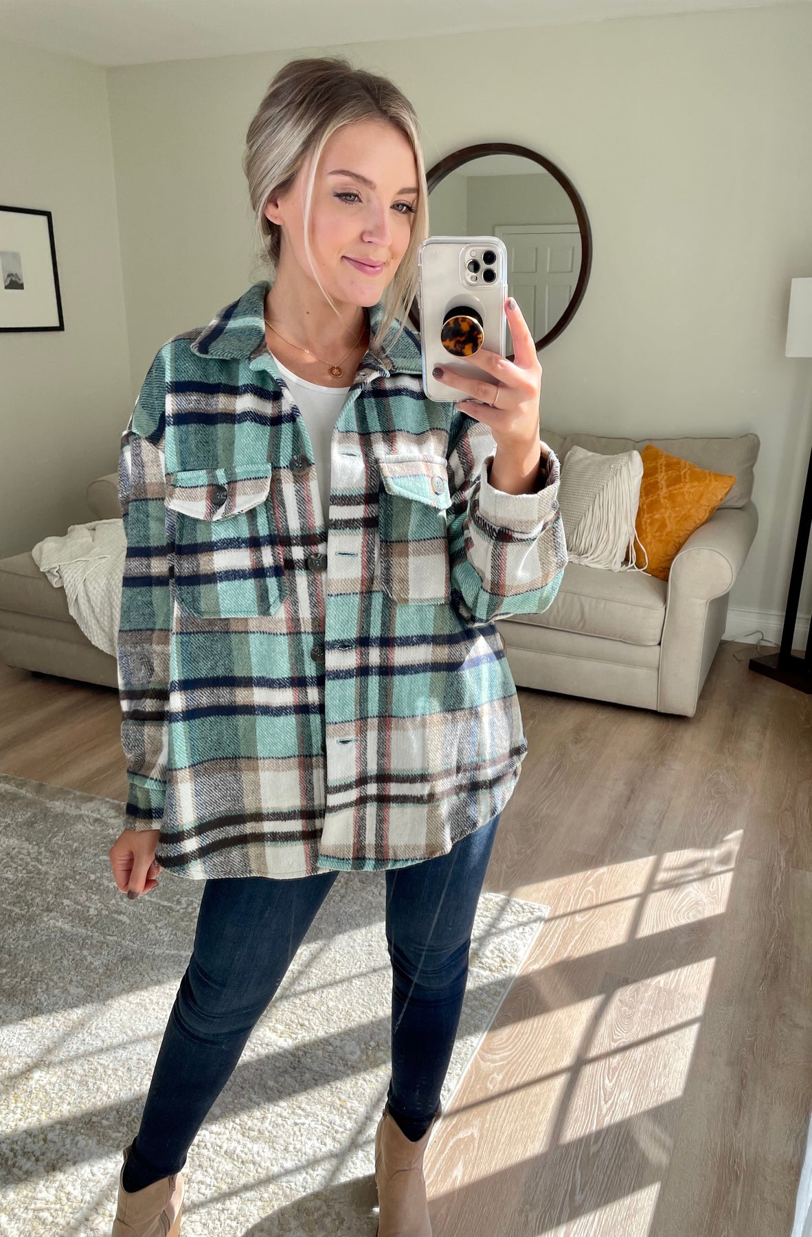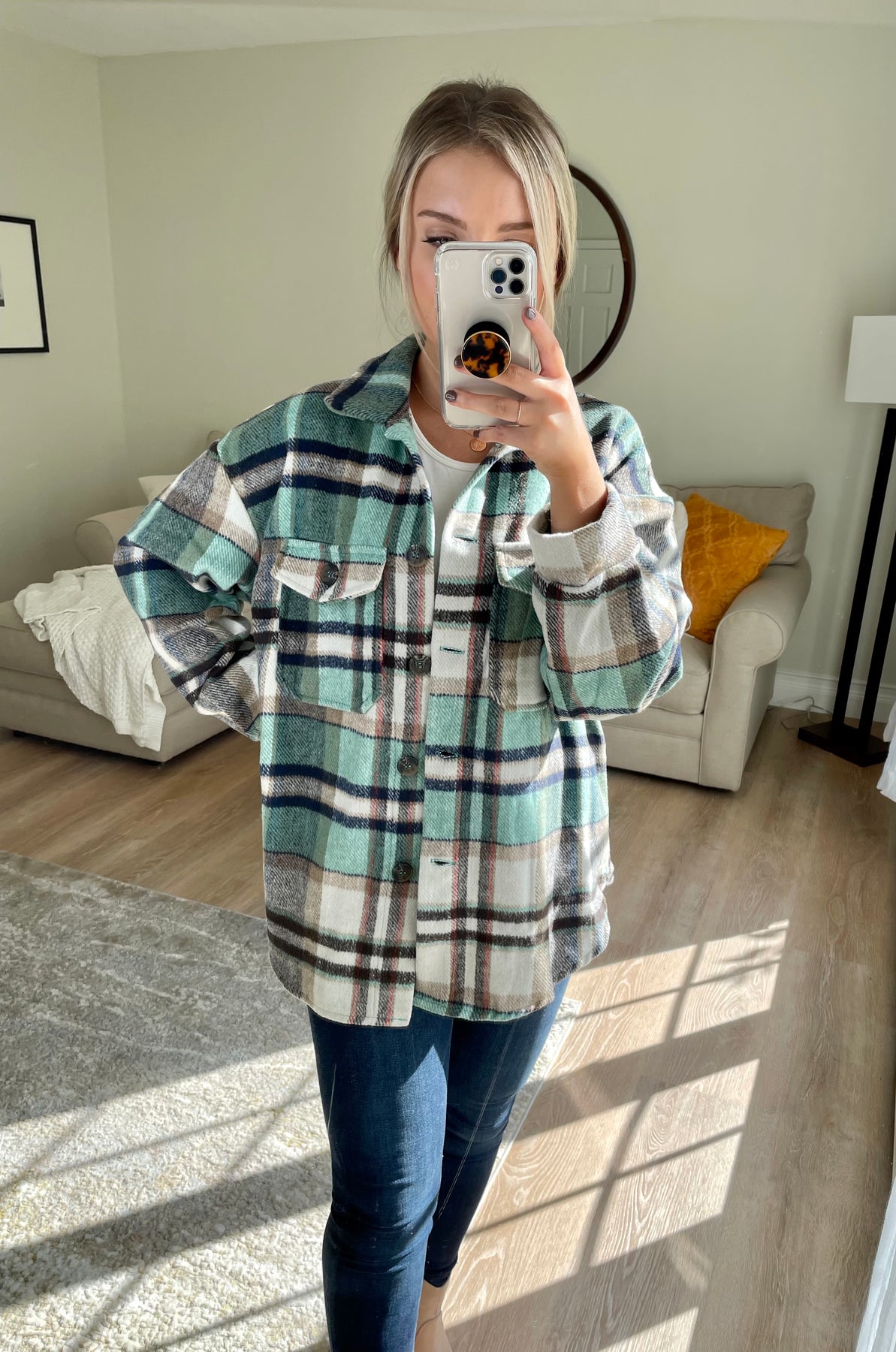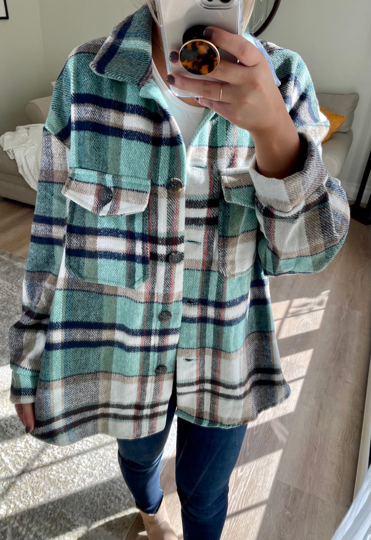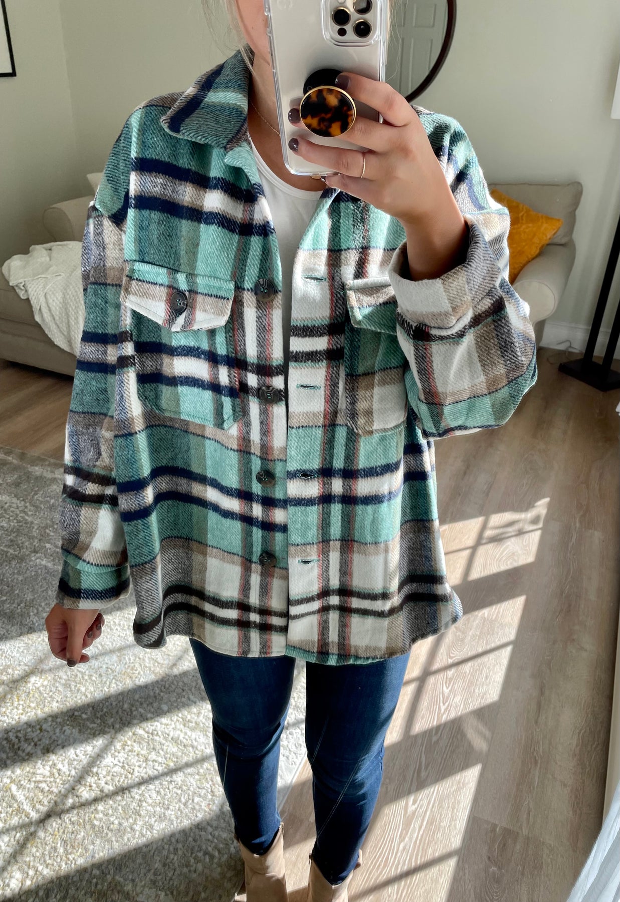Mint Plaid Shacket