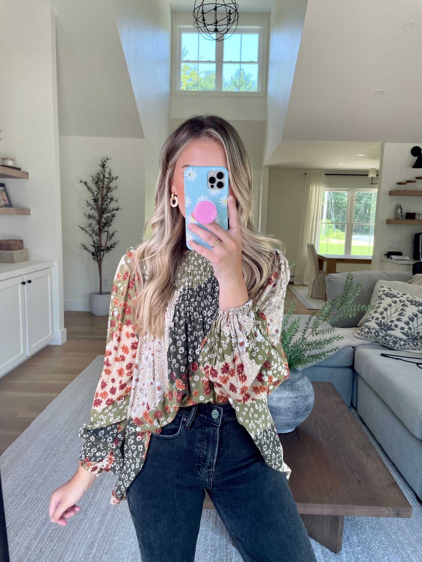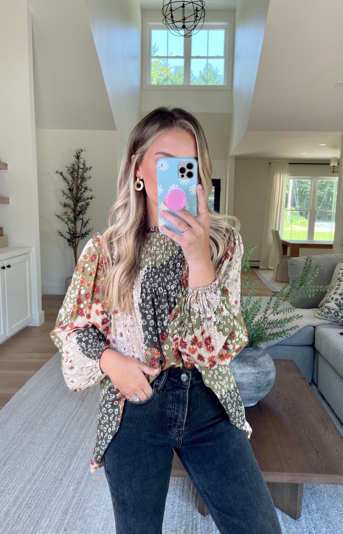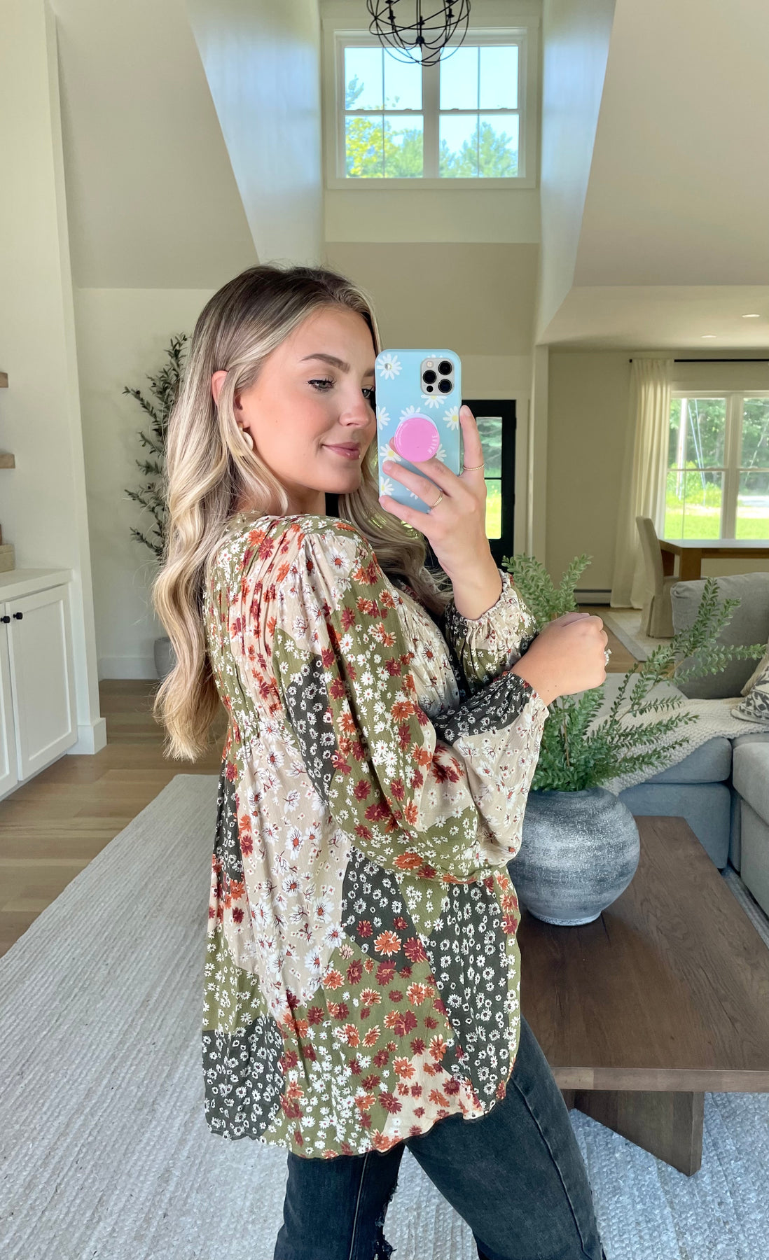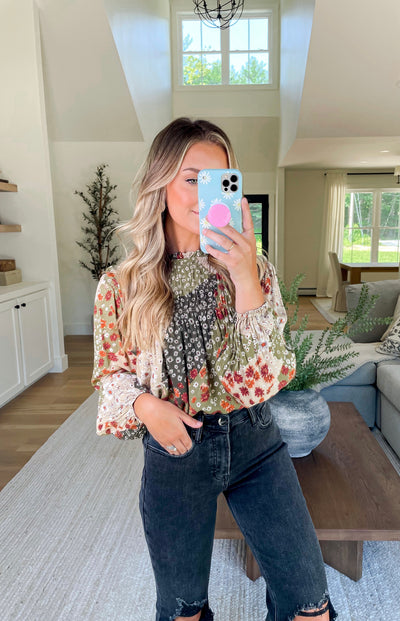 Olive Patchwork Smocked Blouse