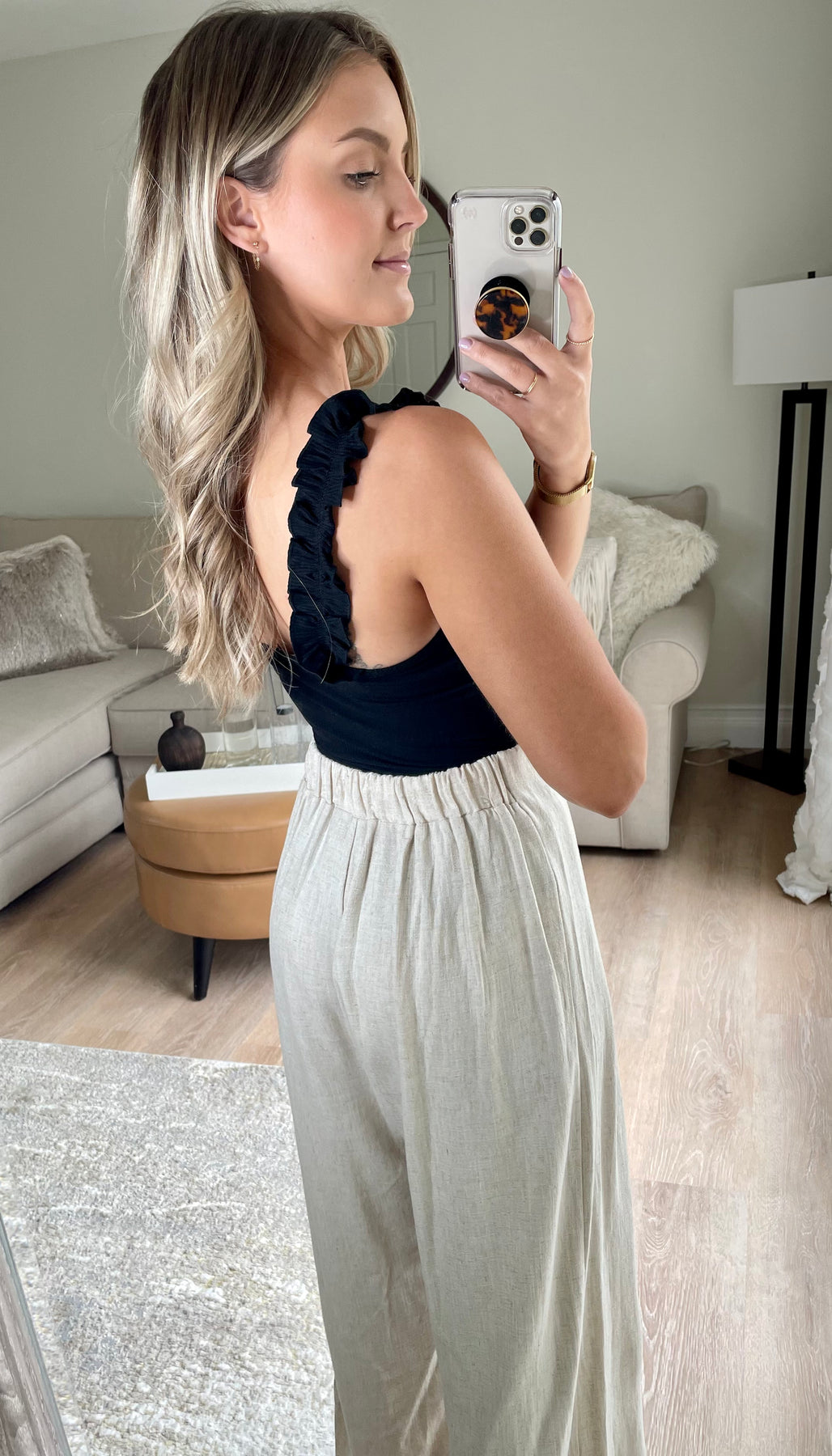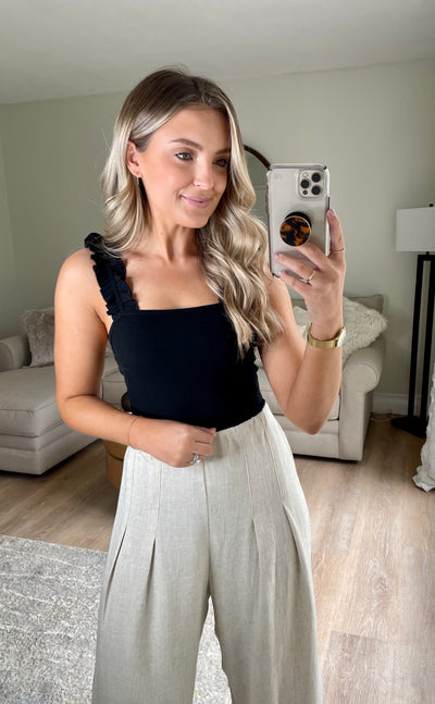 Ruffle Strap Ribbed Bodysuit // Black