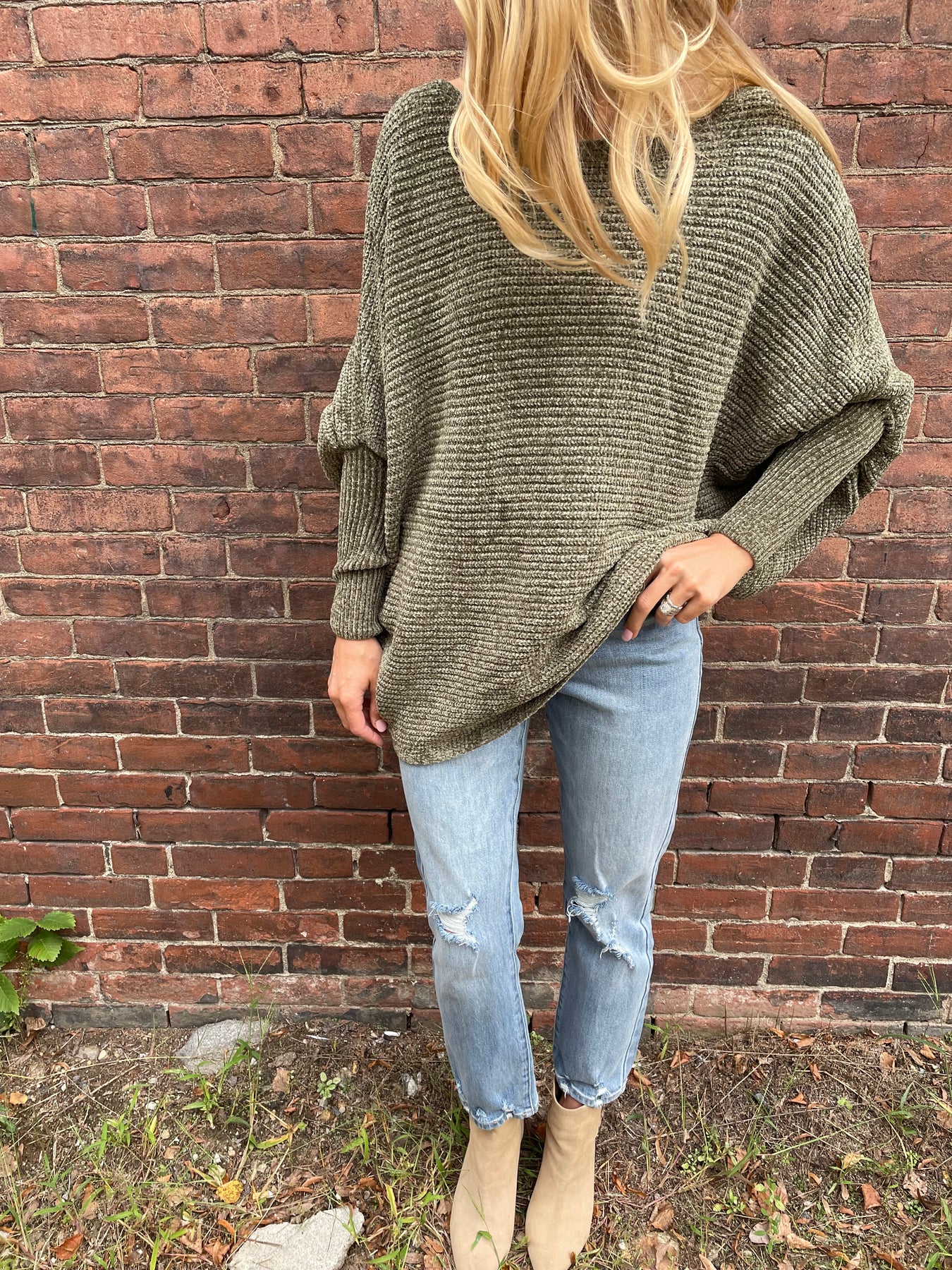 Dolman sleeve oversized sweater that is perfect to tuck into jeans or to wear with leggings!