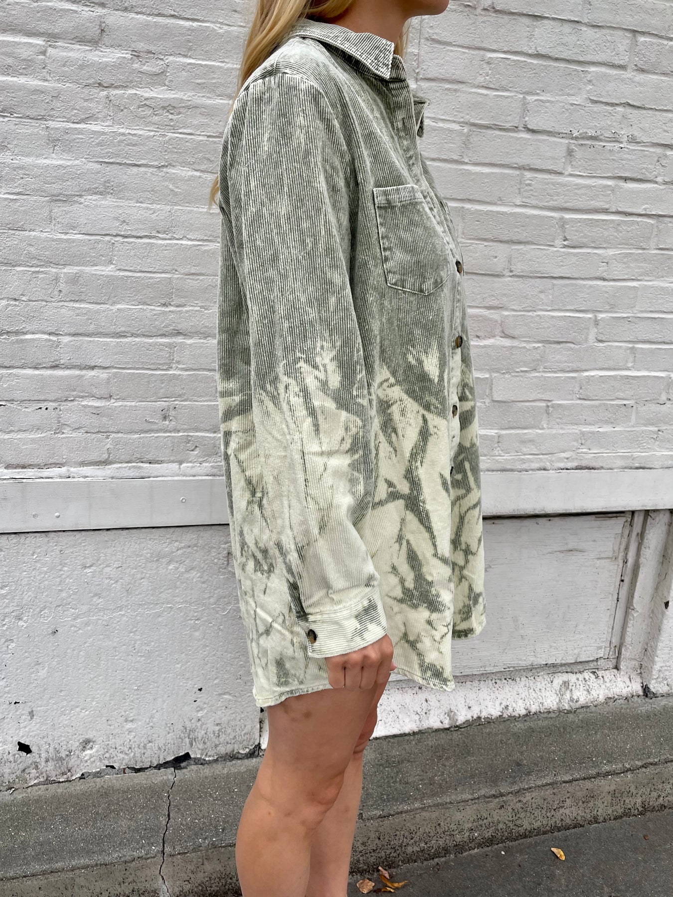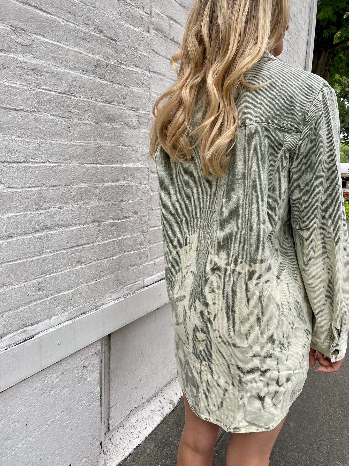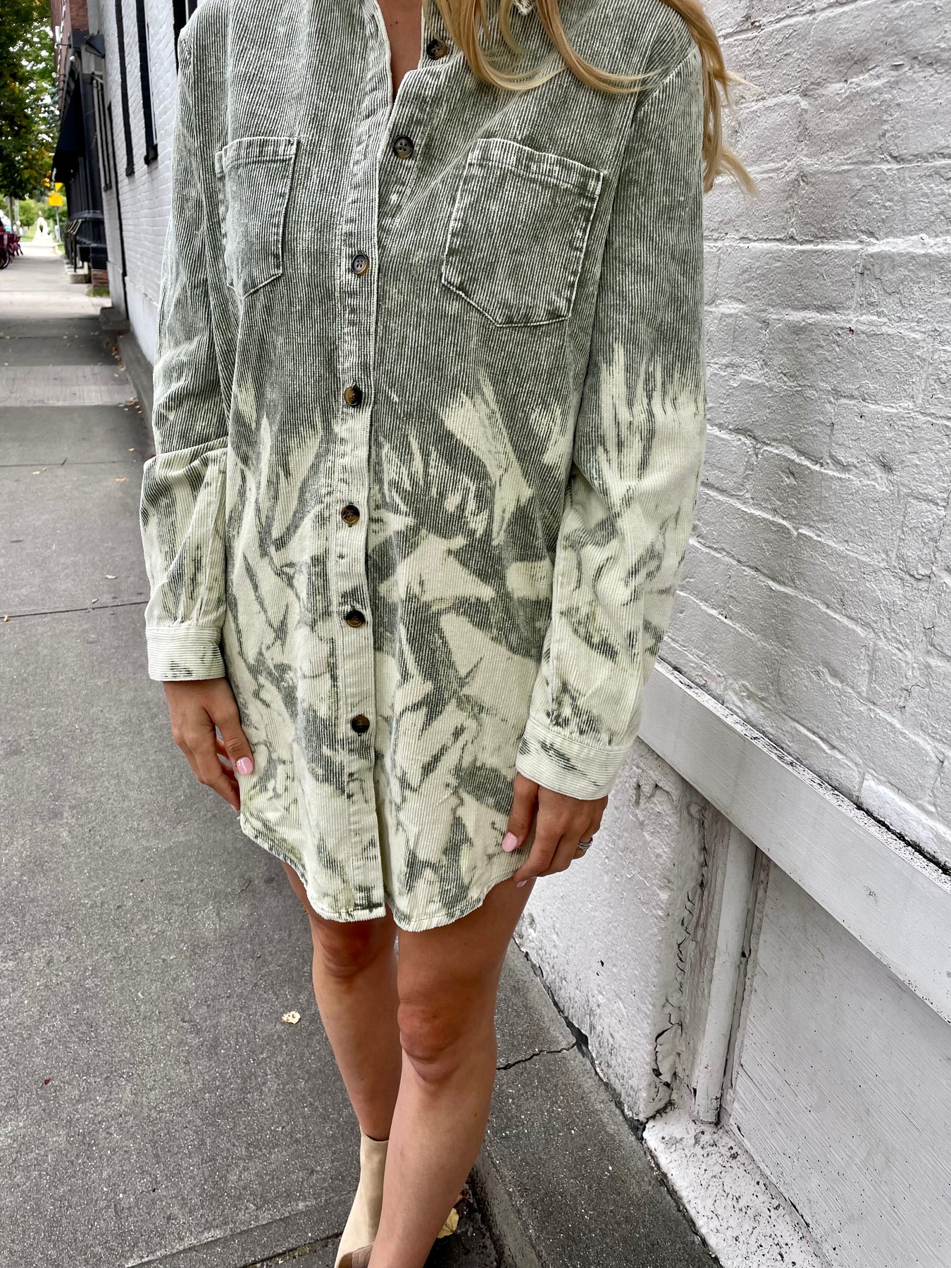 Washed tie dye corduroy top that can be worn open as a shirt or as a dress!