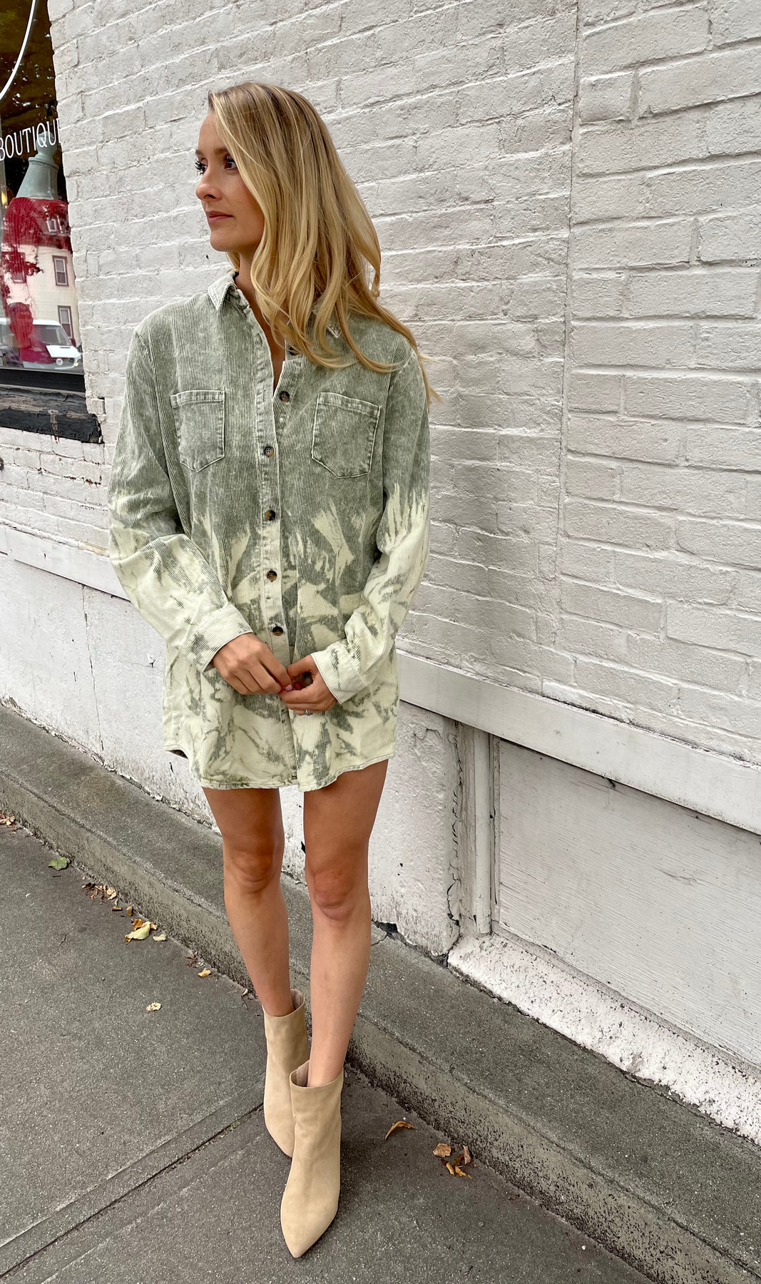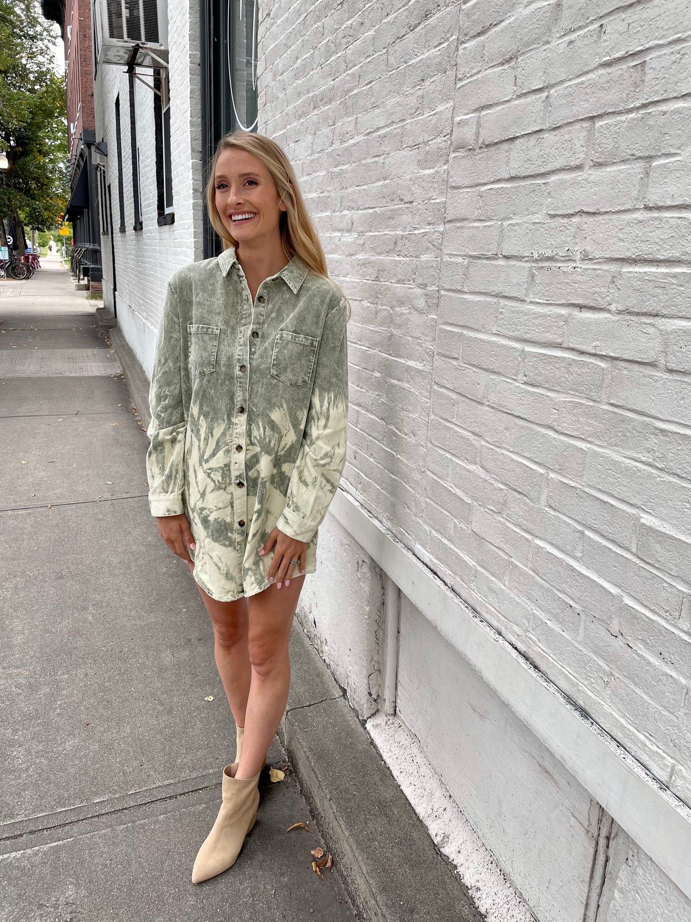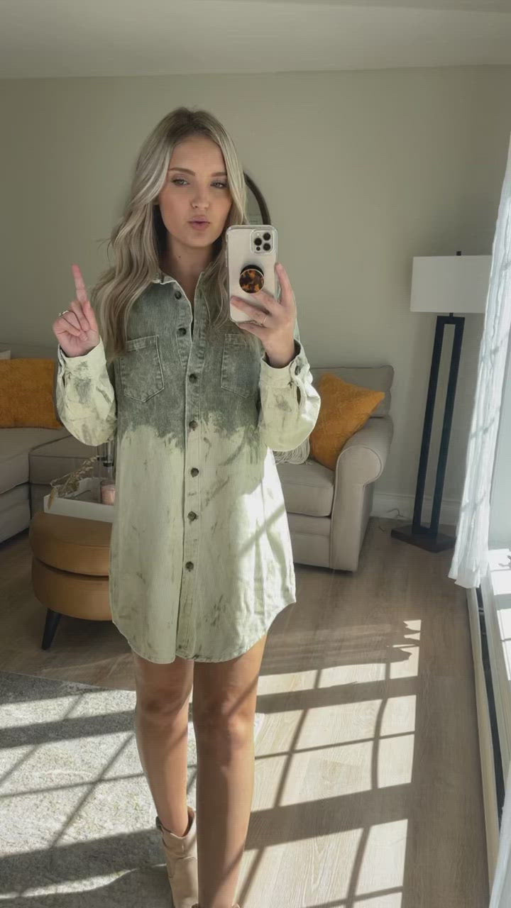 Washed tie dye corduroy top that can be worn open as a shirt or as a dress!